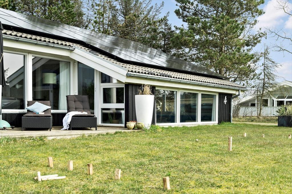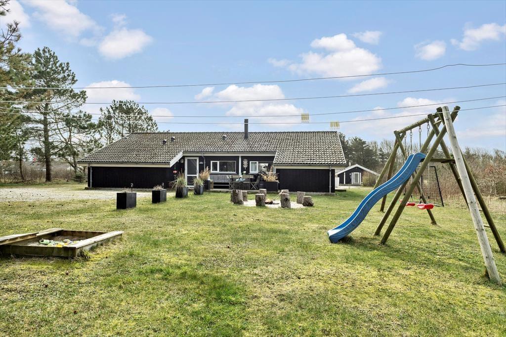 Udemiljøet omkring sommerhuset er noget helt særligt. Her er plads til leg, boldspil og afslapning på græsset, og den store have med bålplads indbyder til hyggelige aftener under åben himmel. Terrassen er den perfekte ramme til solrige dage, hvor du kan slappe af i loungemøblerne eller nyde et måltid ved udendørs spisebordet. Hele området er anlagt med omtanke, så både børn og voksne kan få den perfekte ferieoplevelse, uanset om det drejer sig om leg, afslapning eller kvalitetstid sammen. Uanset om du er til solbade, grillmiddage eller stjernekiggeri, er der altid en dejlig plads at være.