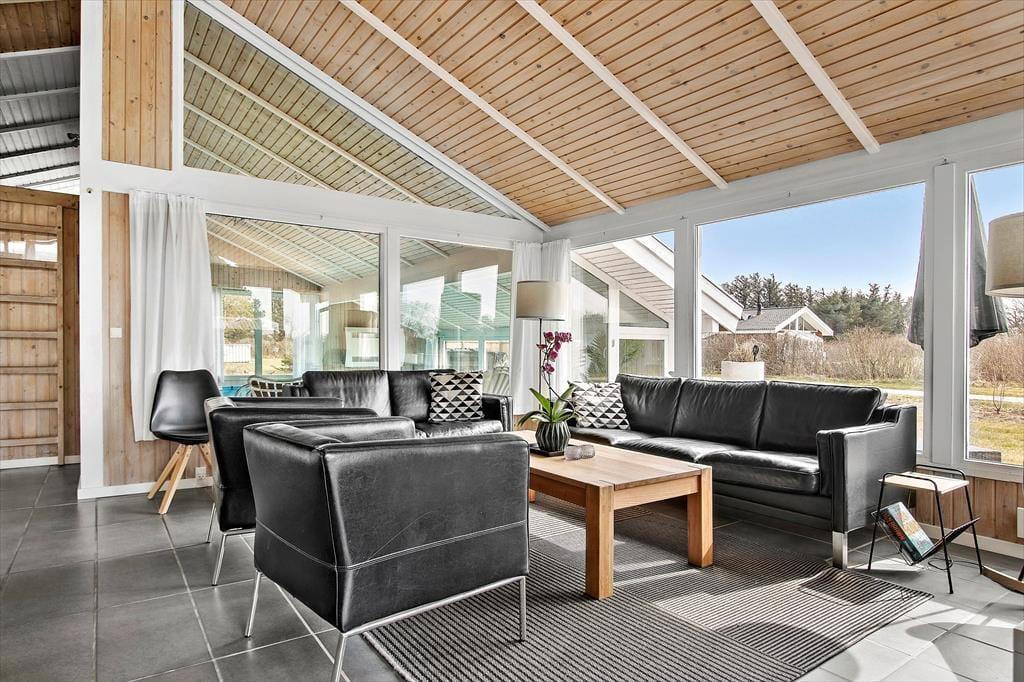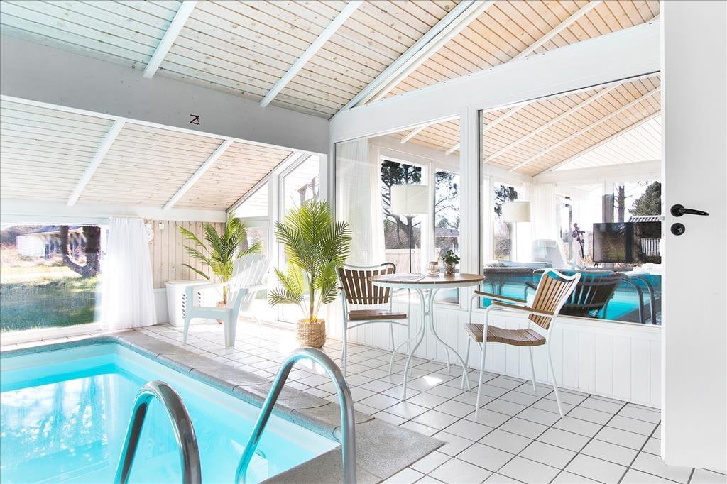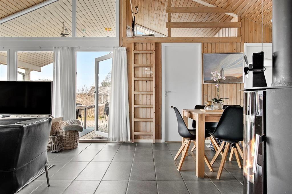 Når du træder indenfor i sommerhuset, vil du straks føle dig hjemme. Indretningen er både smagfuld og hyggelig, og de varme nuancer i rummene skaber en indbydende stemning. Fra stuen kan du følge med i, hvad der sker i det velindrettede poolområde, så børnene kan trygt lege, mens du slapper af. Brændeovnen i stuen tilføjer ekstra hygge på kølige dage, og du kan finde ro, mens du ser flammerne danse. Huset er indrettet med tanke på både komfort og funktionalitet, så du kan nemt tilbringe tid sammen med familien, hvad enten du laver mad i det åbne køkken eller nyder en stille stund i stuen.