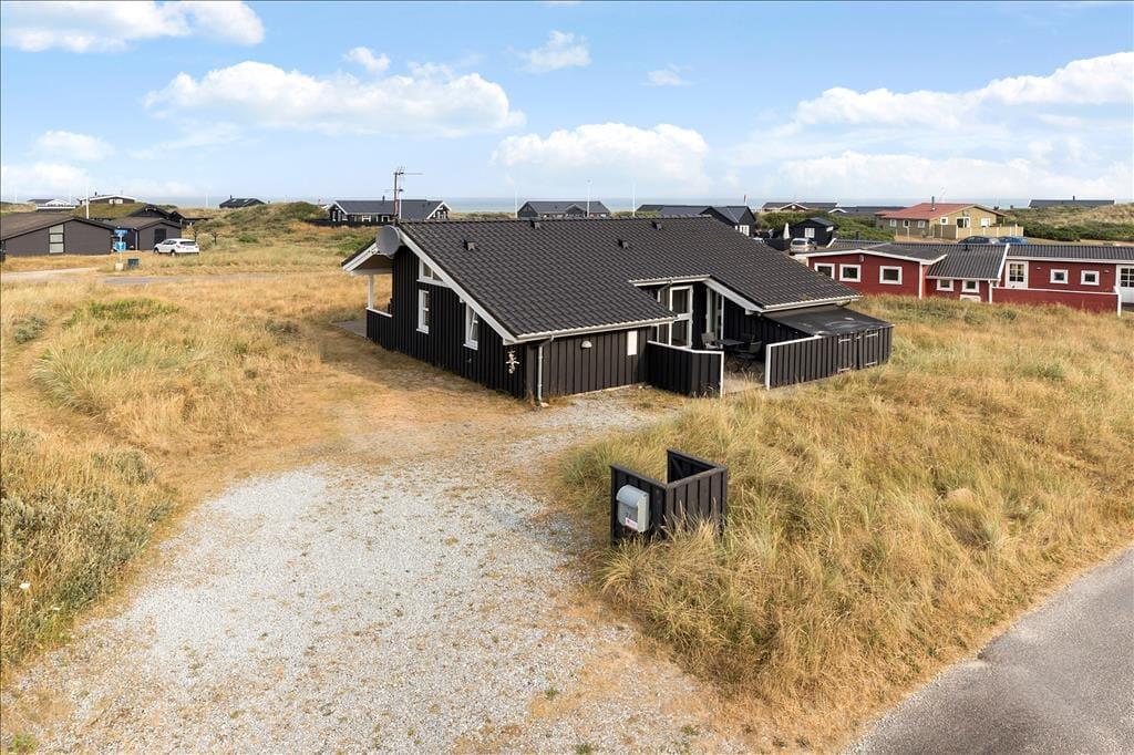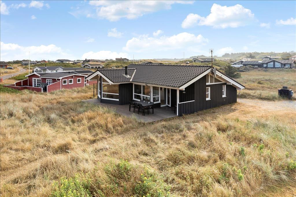 Sommerhuset ligger på en skøn og let kuperet naturgrund i indlandsklitterne, her er fred og ro, og her kan man nyde den smukke udsigt over landskabet. På morgenterrassen kan man nyde solen og dagens første kop kaffe, mens terrassen ved opholdsrummet indbyder til grillmåltider og aftenhygge.