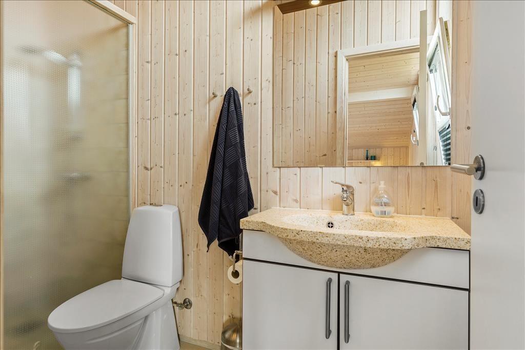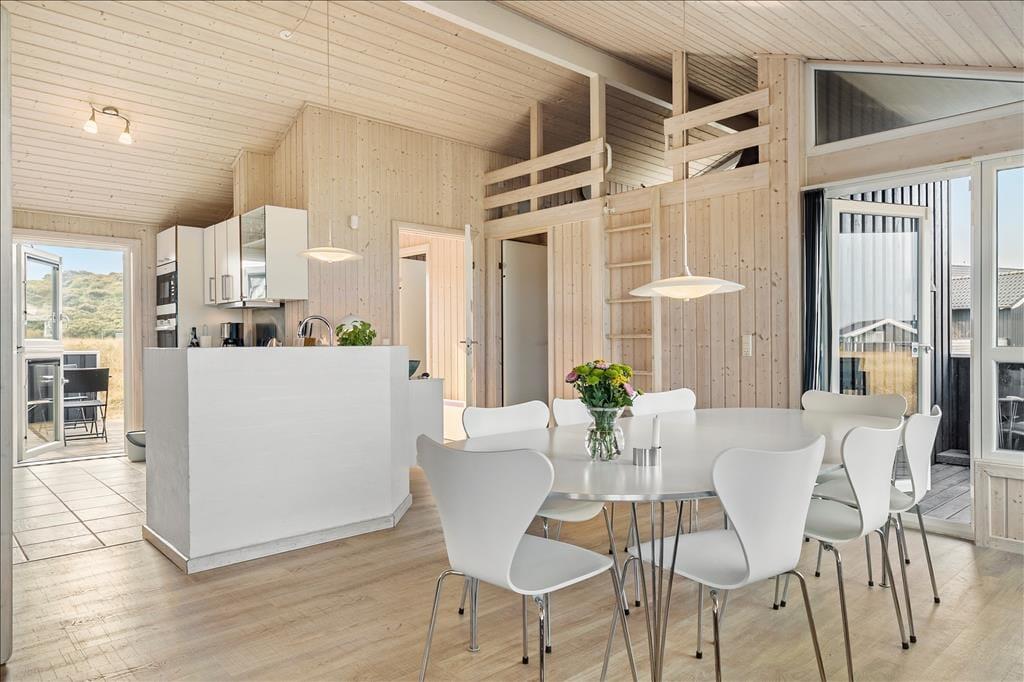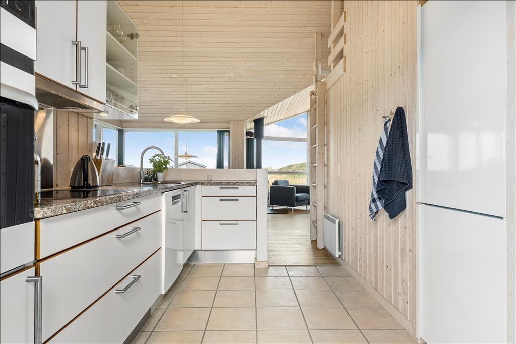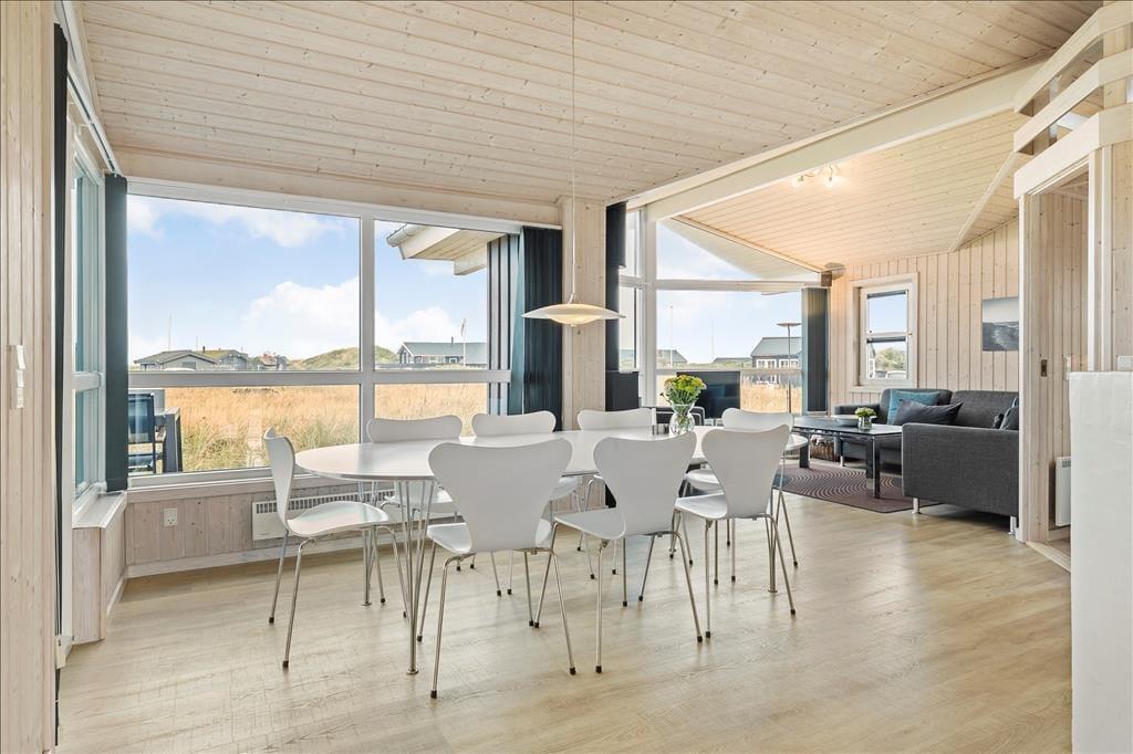 Velkommen indenfor i et moderne og veludstyret sommerhus. Her kan hele familien være sikker på at få en god, afslappende og minderig ferie i de bedste rammer. Med tre værelser, to hemse og to badeværelser er her plads nok til alle, og fra det åbne køkken har man direkte adgang til spisestuen og opholdsstuen med tv, brændeovn og udsigt til Vesterhavet. Sommerhuset er indrettet med pæne og klassiske møbler, velfungerende hårde hvidevarer og moderne teknisk udstyr som parabol og trådløst internet, så medbring gerne tablet og pc hjemmefra og få nem adgang til oplysninger og informationer om områdets mange muligheder. Har man mindre børn med på ferien, vil man sætte pris på, at der er mulighed for at vaske og tørre tøj og håndklæder, ligesom der i sommerhuset forefindes både stol og seng til de mindste.