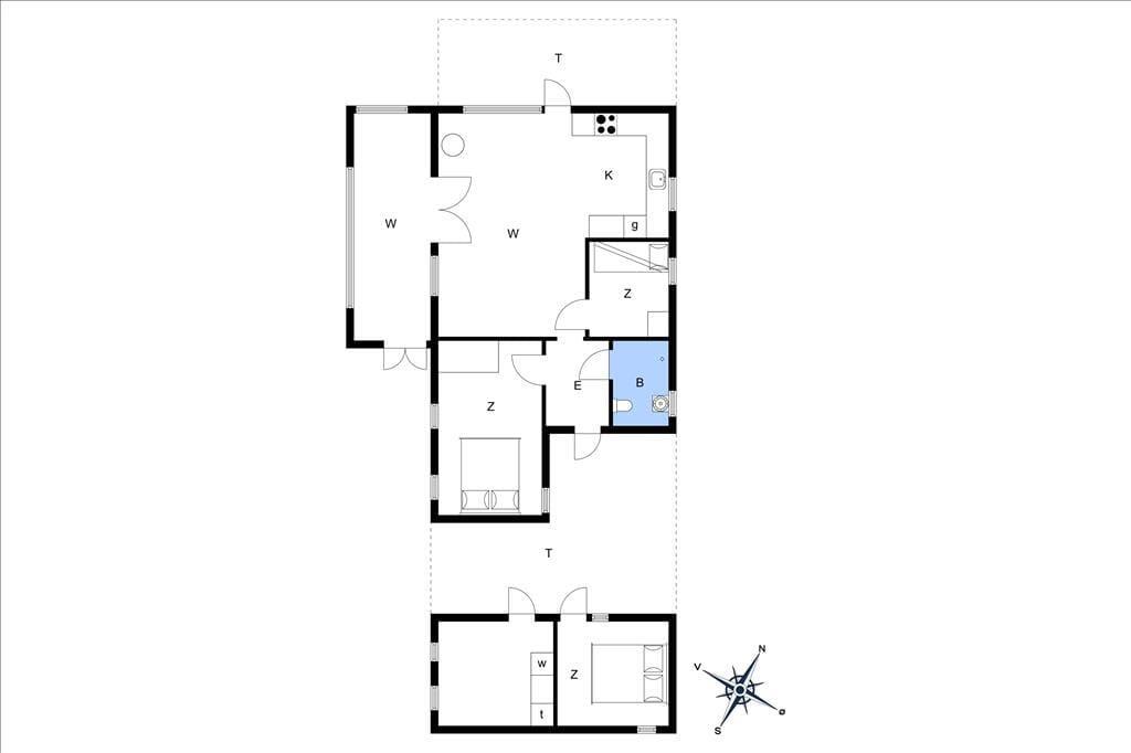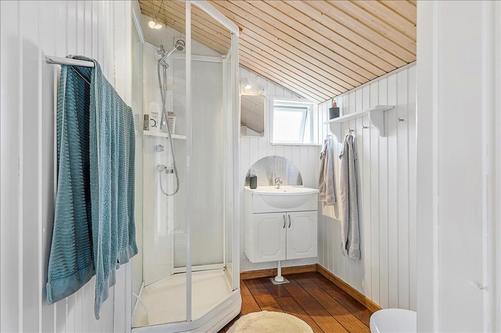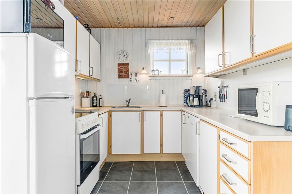 Udenpå er sommerhuset holdt i de klassiske sort-hvide farver, mens indretningen indendørs er lys og venlig med gode kvalitetsmøbler og mange charmerende detaljer. Her kan alle finde sig til rette og holde en afslappende ferie i familiens skød. Hovedhuset består af en lille entre, badeværelse med toilet og bruser, to soverum med hhv. dobbeltseng og køjeseng, køkken med opvaskemaskine og stue med adgang til en spisestue. I stuen er opstillet en flot og funktionsdygtig brændeovn, og herfra kan man nyde udsigten til Vesterhavet. I annekset finder man endnu et soveværelse med dobbeltseng, så der i alt kan overnatte seks personer i sommerhuset. Sommerhuset har fællesantenne med mange nordiske programmer, og medbringer man sin pc eller tablet, kan man logge på det trådløse internet og streame yderligere programmer og søge information om områdets mange spændende muligheder.