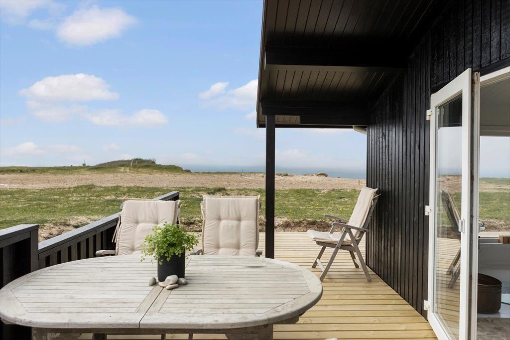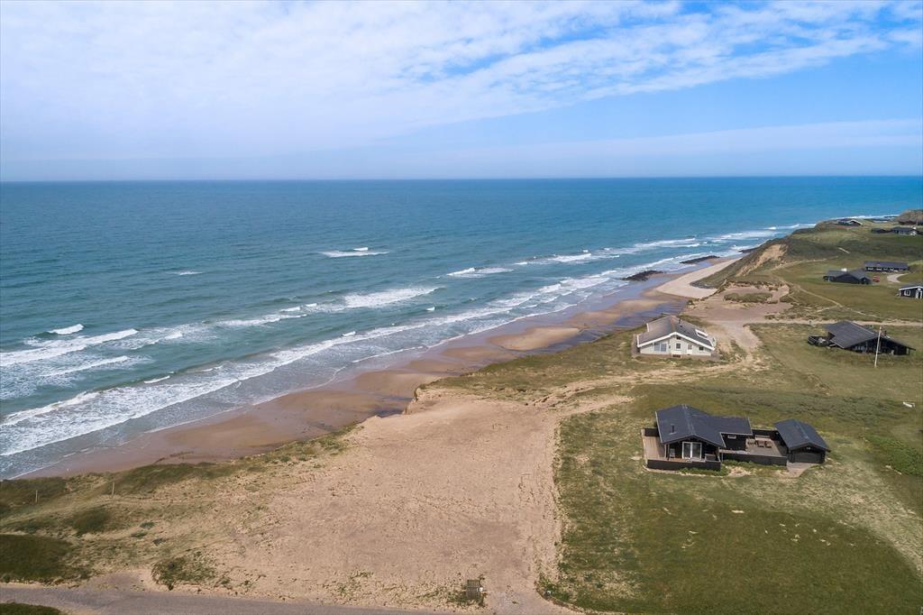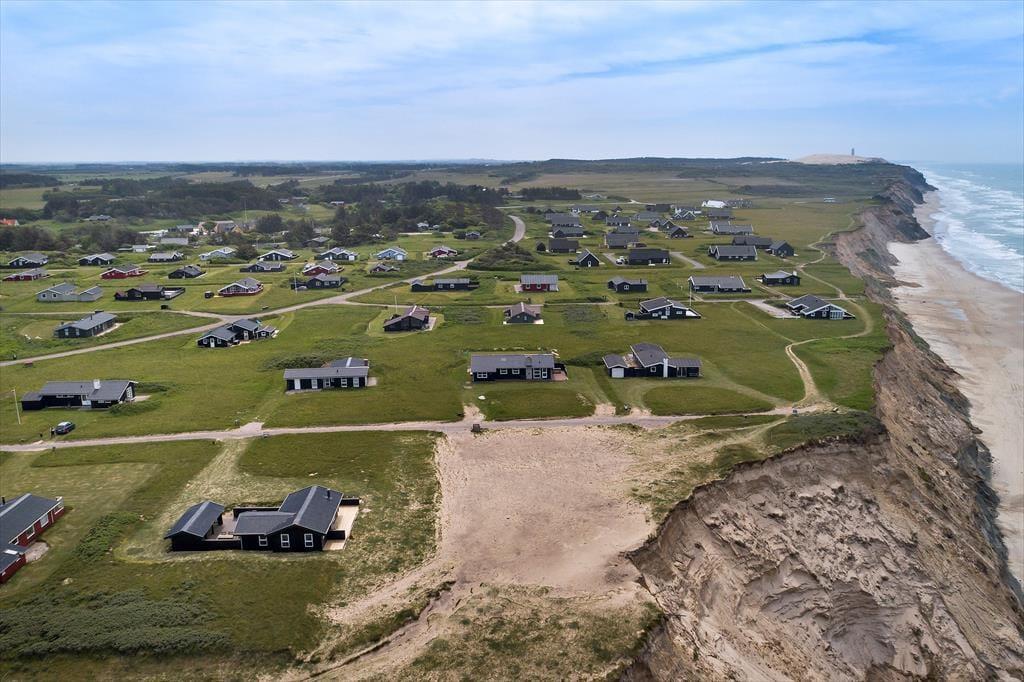 Sommerhuset ligger på en naturgrund højt hævet over Vesterhavet. Stranden kan nås via en trappe tæt på. Fra huset og grunden kan man nyde udsigten over havet samt Rubjerg Knude. Der er terrasser næsten hele vejen rundt om huset, så det er muligt at nyde både morgen og aftensolen.