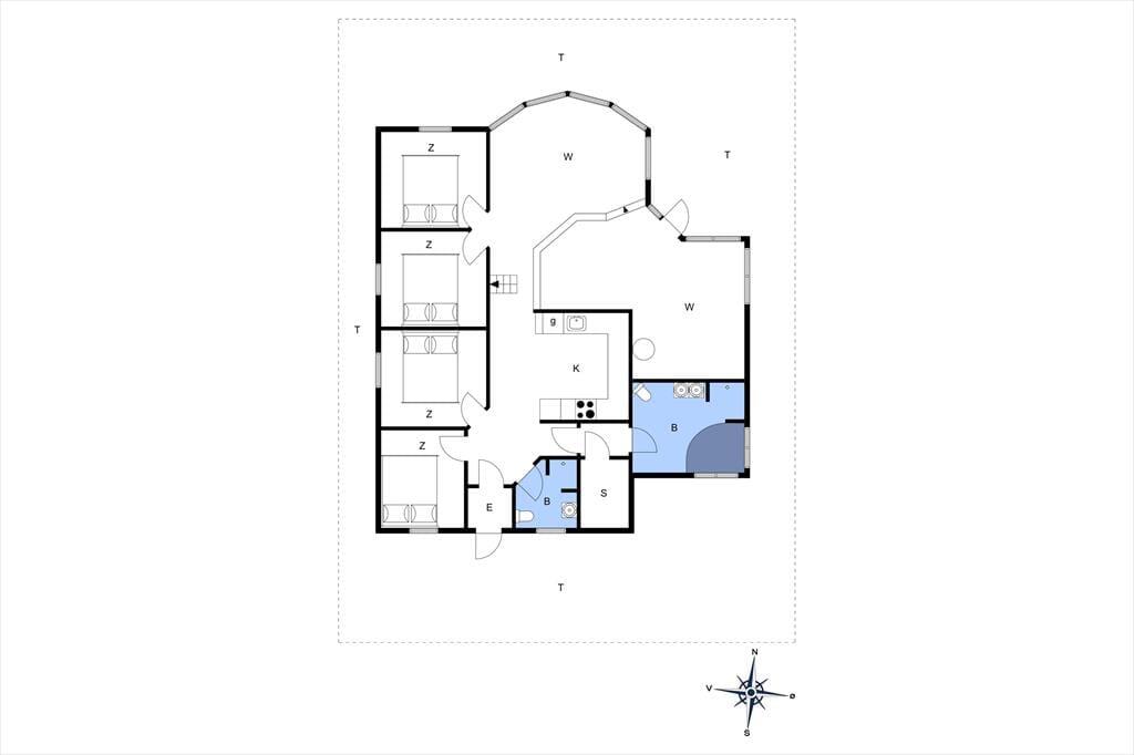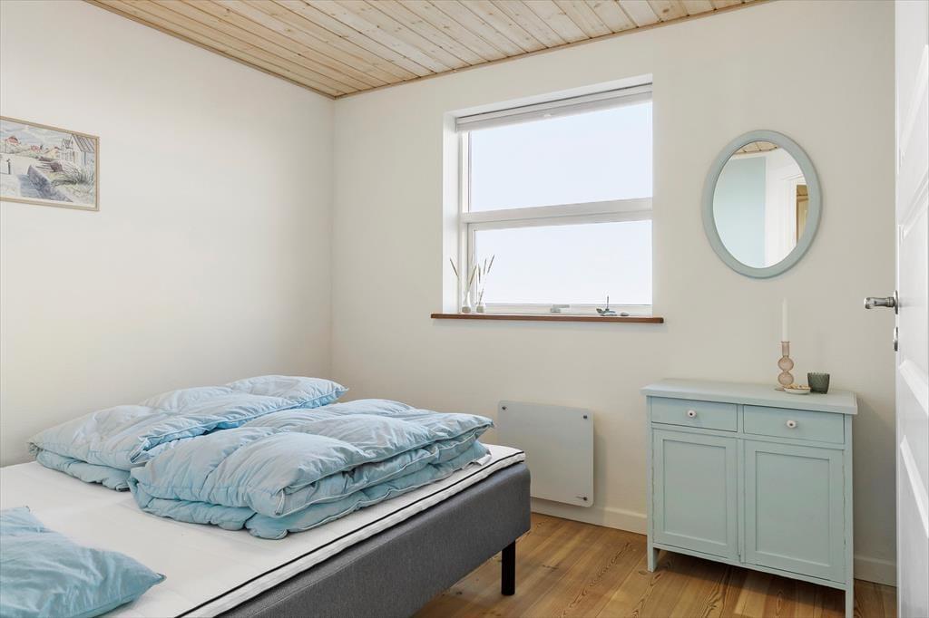 Vores favoritspot i huset er klart spisestuen, hvor de store, buede vinduer giver fantastisk udsigt over havet. Tænk at nyde sine måltider her! Fra spisestuen er der et par trin ned til en hyggelig dagligstue-afdeling med brændeovn og plads til hele familien. I åben forbindelse til stuerne ligger køkkenet, hvor der er god plads og opvaskemaskine. Huset råder over fire soveværelser hver med en dobbeltseng. Der er desuden to badeværelser med bruseniche, og på det store badeværelse er der desuden et spabad. Der er også en sauna ved badeværelserne, så der er rig mulighed for afslapning efter en lang dag. Alt i alt et fint sommerhus med en super beliggenhed og god plads til den store familie.
