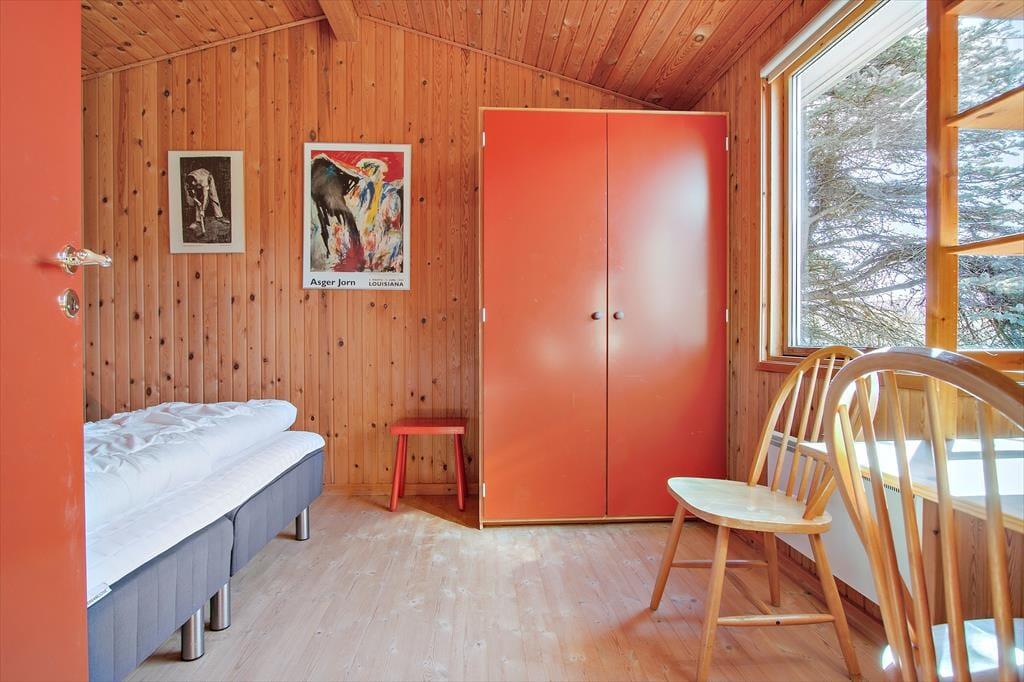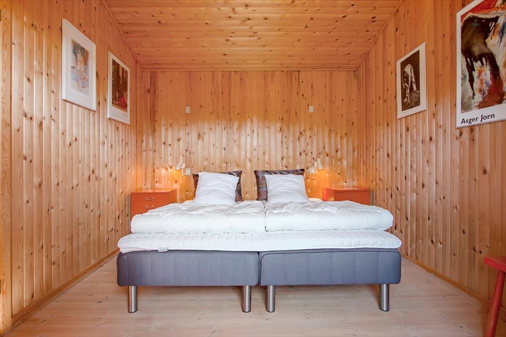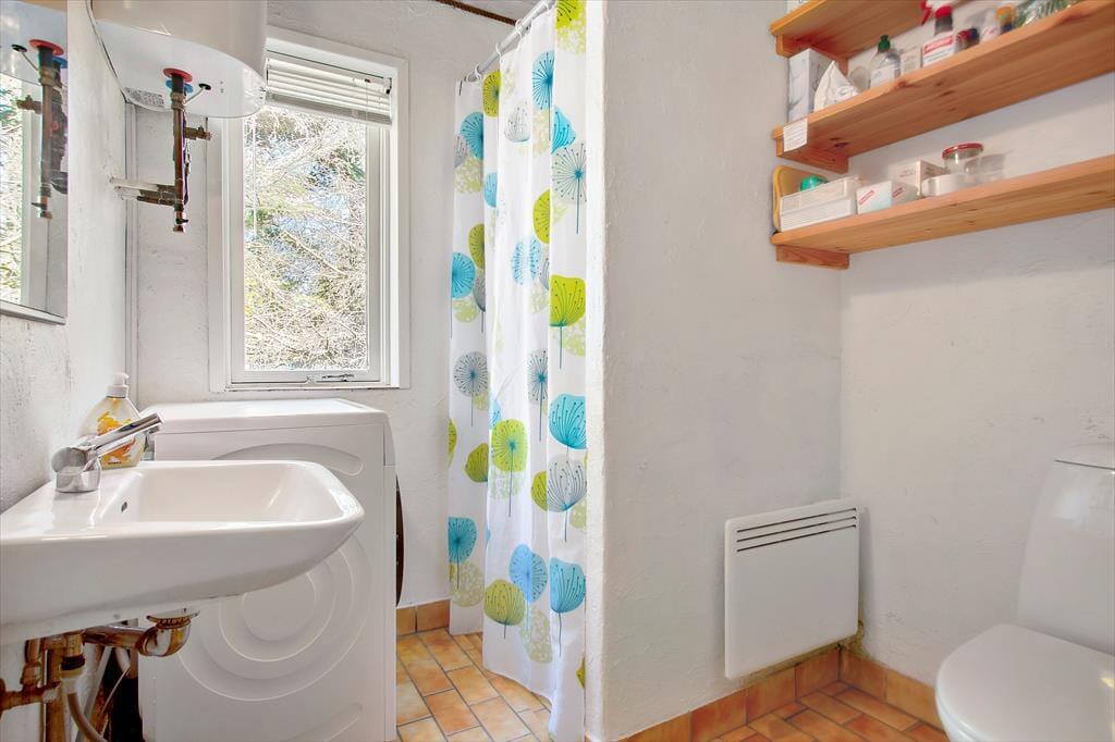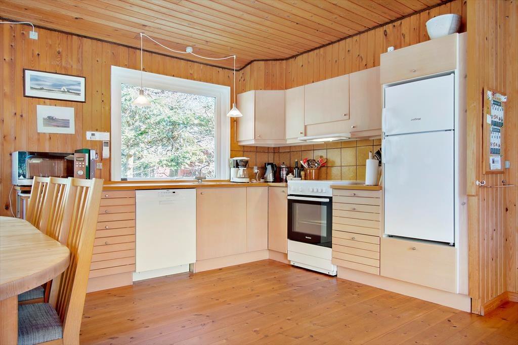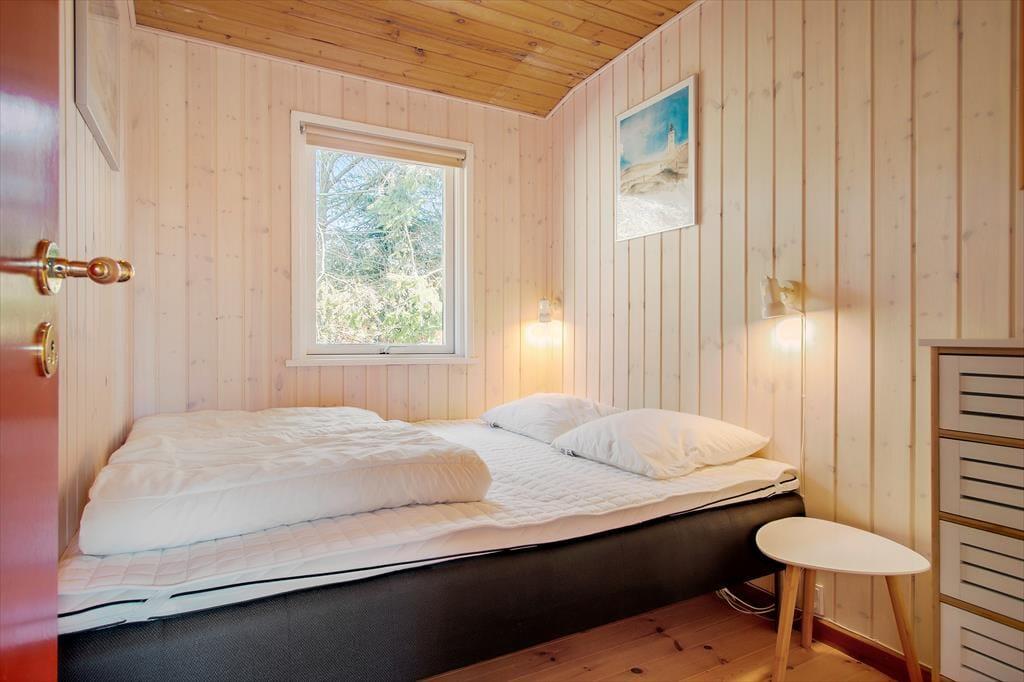 Sommerhuset har plads til 8 personer, fordelt på 4 soverum. 3 soverum er med dobbeltsenge og 1 med en køjeseng. Det store soveværelse er rummeligt og her kan sagtens være en børneseng. Huset har to badeværelser. Et nyere med toilet og brus, og varme i gulvet. Samt et lidt ældre med toilet og brus. Der findes god skabsplads i huset, både i rummene og i fordelingsgangen. Køkken og stue er i et, og der er brændeovn til de kølige aftener. Fra stuen er der åbnet ud til vestvendt terrasse som er delvist overdækket. Fra denne terrasse er der adgang til et viktualierum, med ekstra køleskab og plads til opbevaring. Køkken og stue er åbent og giver mulighed for at være sammen med hele familien, og med direkte udgang til dejlig sydvendt terrasse med god læ og solkrog samt delvist overdækket terrasse mod vest, hvor aftensolen kan nydes. Sommerhuset er en sand retroperle, indrettet med sans for kvalitet og bevarelse af den oprindelige sommerhusstil. Man finder således originale skabe i brændt orange, indretningsdetaljer med vægt på klassiske skandinaviske design. Et utroligt hyggeligt sommerhus. Til børnene er der et skab fyldt med spil til regnvejrsdagene eller en hyggelig aften. Hertil kommer en stor lukket terrasse bagved, hvor man altid kan finde læ, det er næsten en gårdhave.