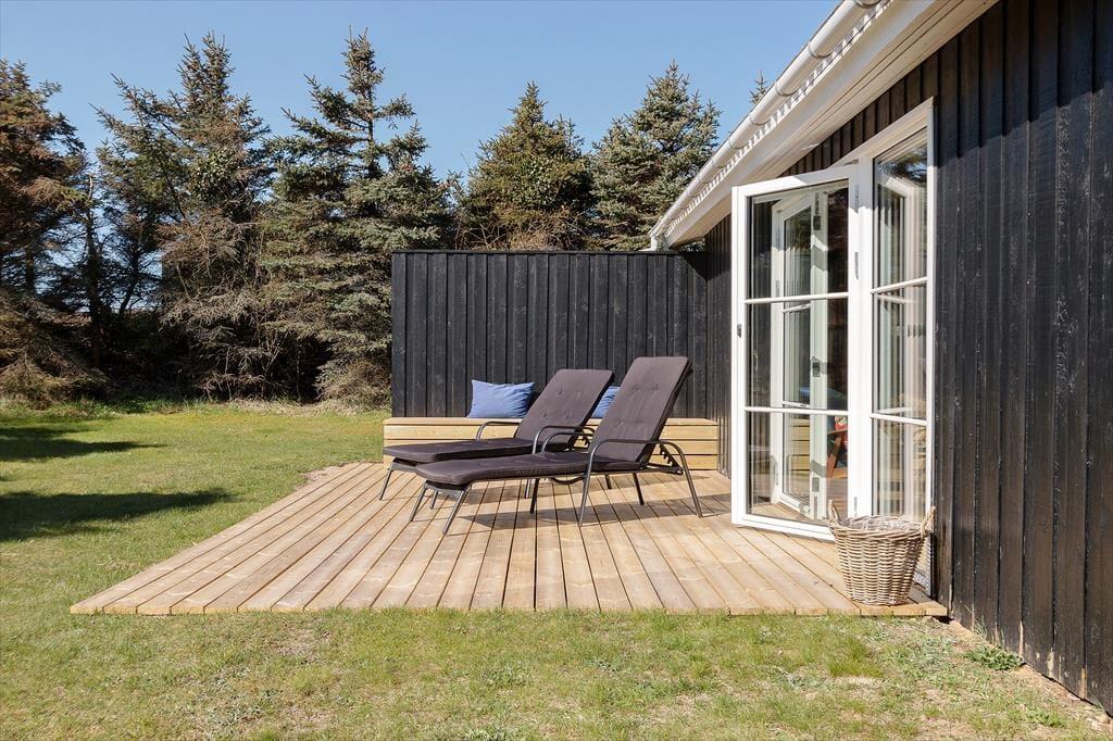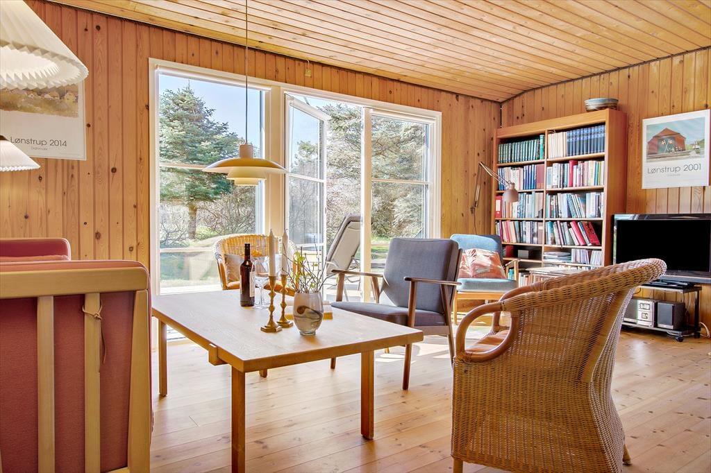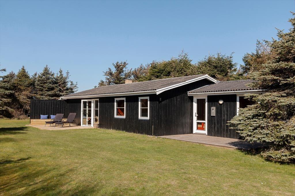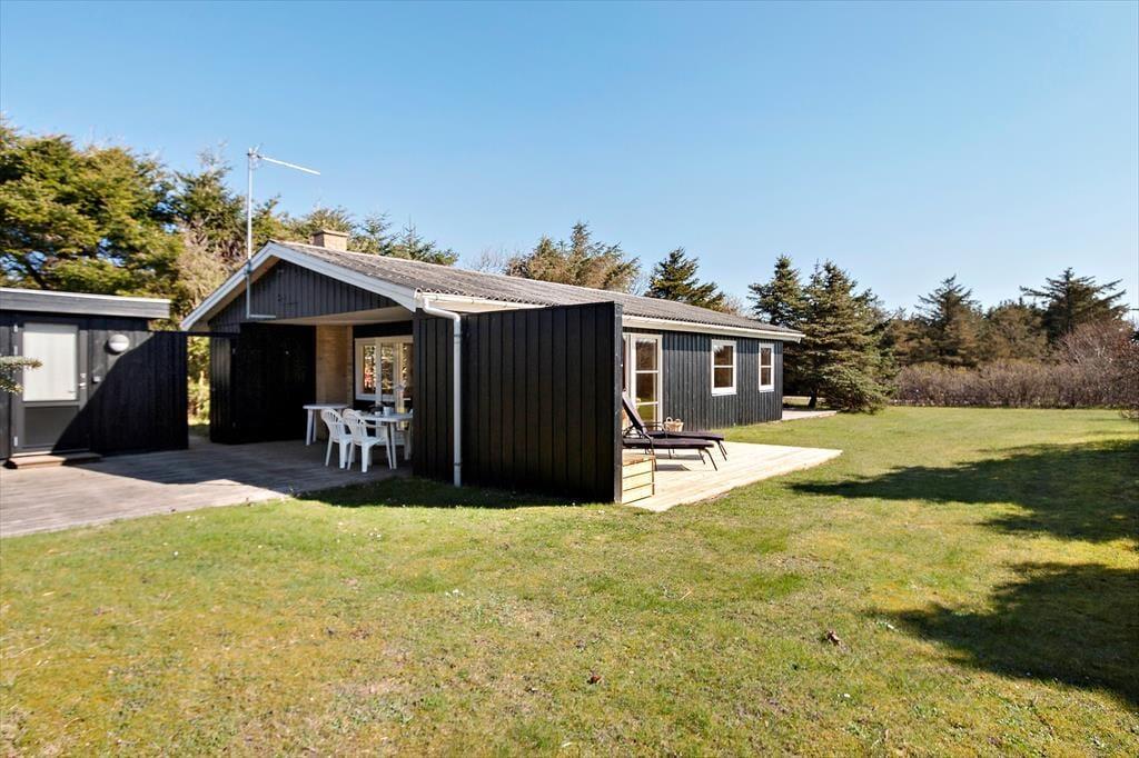 Tilbagetrukket på en hyggelig og rolig vej, finder I dette skønne sommerhus. Med terrasser på alle sider af huset, og en naturgrund, er der masser af muligheder for læ og for aktiviteter udendørs. Til udendørs brug er der også mulighed for spil i haven, som man finder i skuret ved den bagerste terrasse og der er en stor græsplæne som egner sig godt til boldspil og andre aktiviteter. Mod øst findes der også en lille træterrasse, hvor der er morgensol. Dette sommerhus er en ægte hyggeperle. Selvom der ikke er havudsigt fra grunden, er der blot 2 min gang fra huset en skøn udsigtspost , hvor man kan nyde solnedgangen over Vesterhavet, så man er helt tæt på.