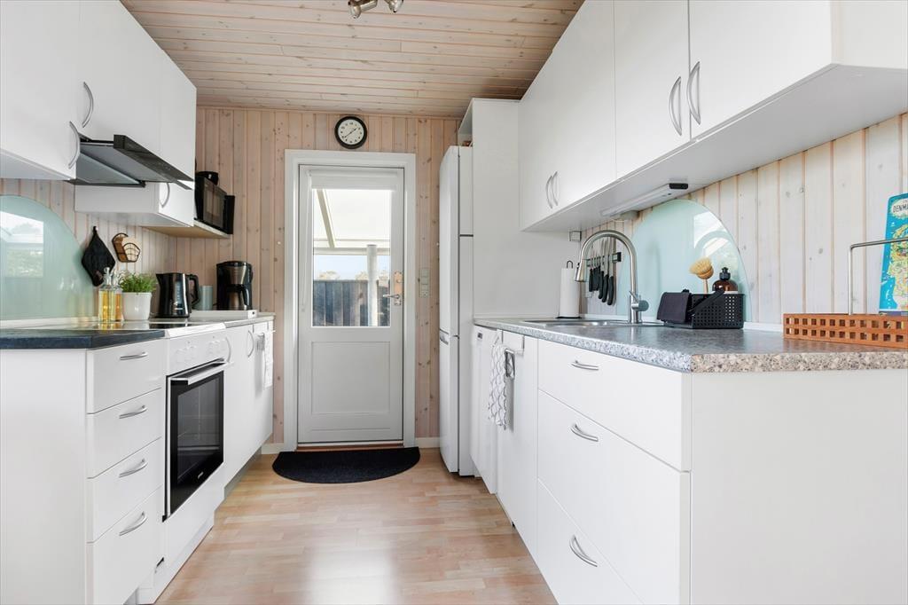 Sommerhus i Lønstrup Strand og By, Nordjylland, med plads til 5 voksne. Der er en hyggelig indretning med bl.a. brændeovn, og du finder desuden vaskemaskine, opvaskemaskine og tørretumbler i boligen.