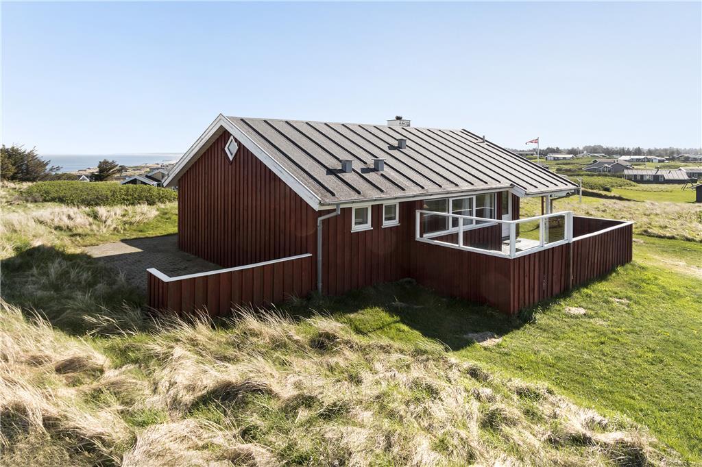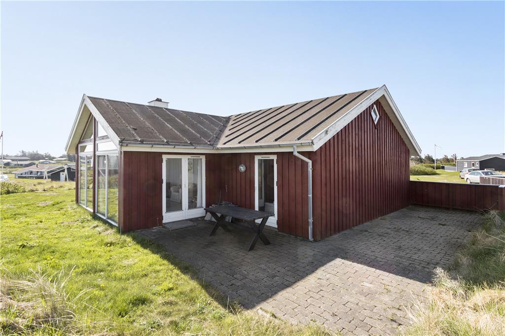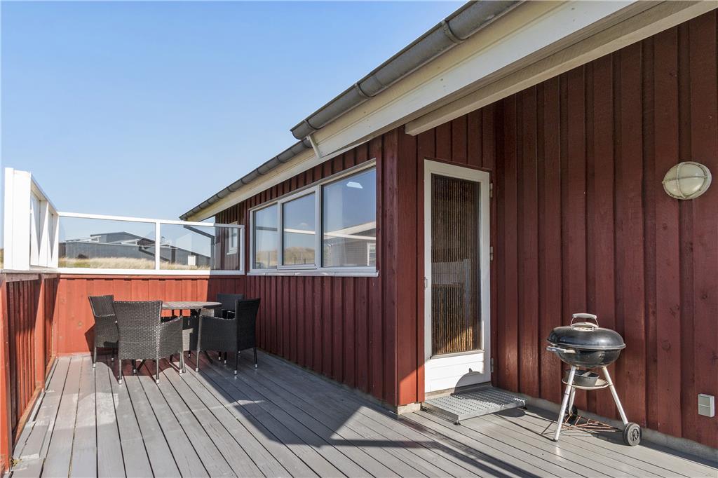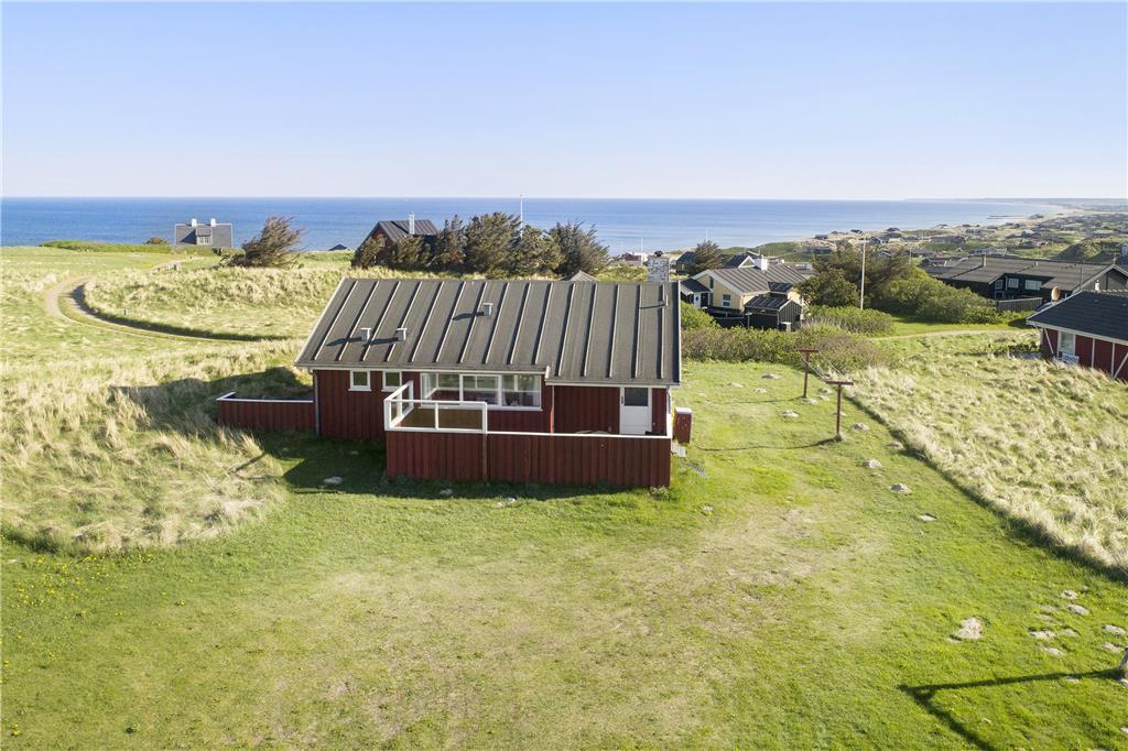 Ved dette hus er der terrasser på begge sider af huset, og med en god afskærmning for vinden, som af og til kan være lidt fremherskende så højt i Lønstrup. Grunden er ikke stor, men der kan sagtens blive plads til en gang boldspil eller måske en omgang kroket.