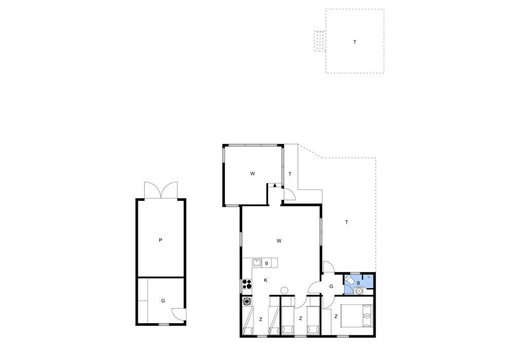 Huset indeholder en lille fordelingsgang med udgang til renoveret badeværelse, et soveværelse med 3/4 seng samt til stuen. Fra stuen er der adgang til to soveværelser, et med to enkeltsenge, og et med køjesenge. Stuen er kombineret køkken/alrum, således man kan være sammen om aktiviteter i huset. Hertil kommer en fantastisk udestue med panoramaudsigt over havet og fyret. Huset er personligt og hyggelig indrettet og meget velholdt. Der er installeret varmepumpe, som har meget positiv betydning for elforbruget. Der er desuden hobbyrum til havemøbler, hynder, cykler mm.