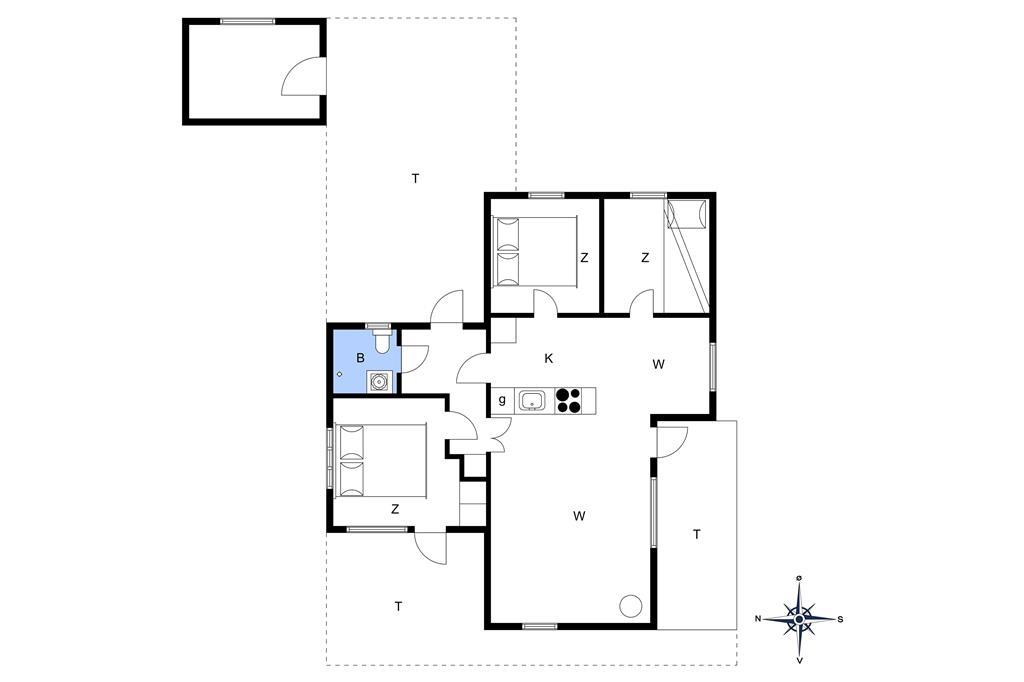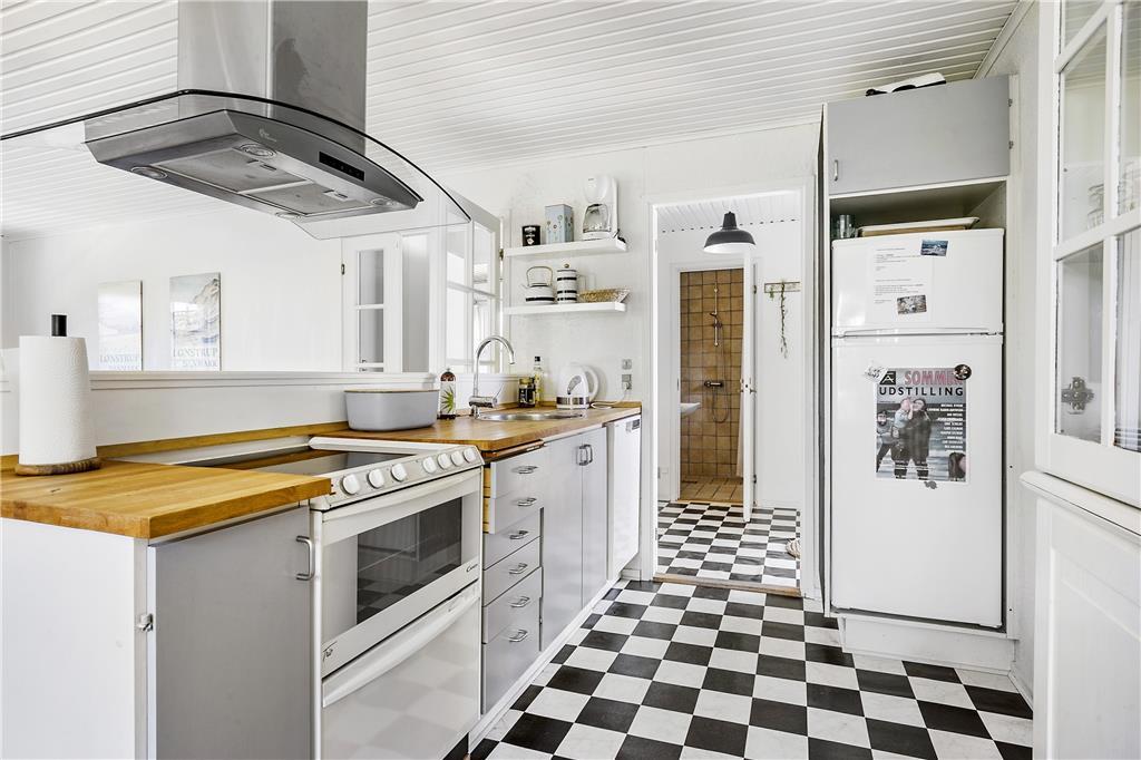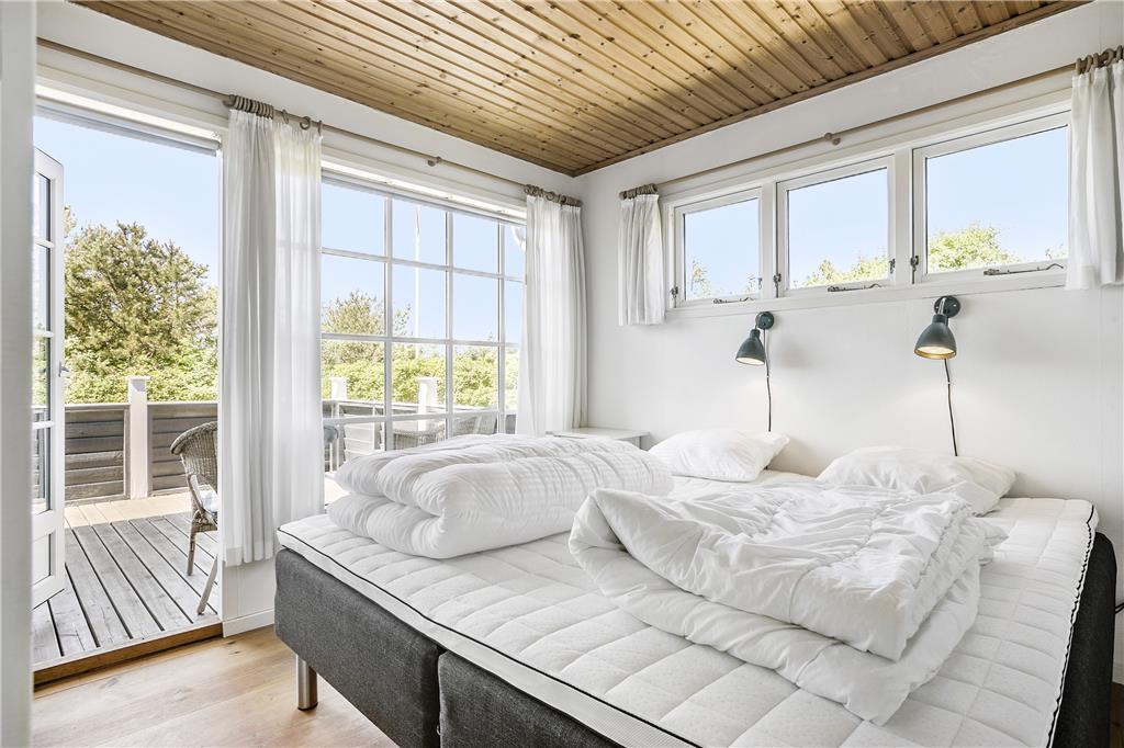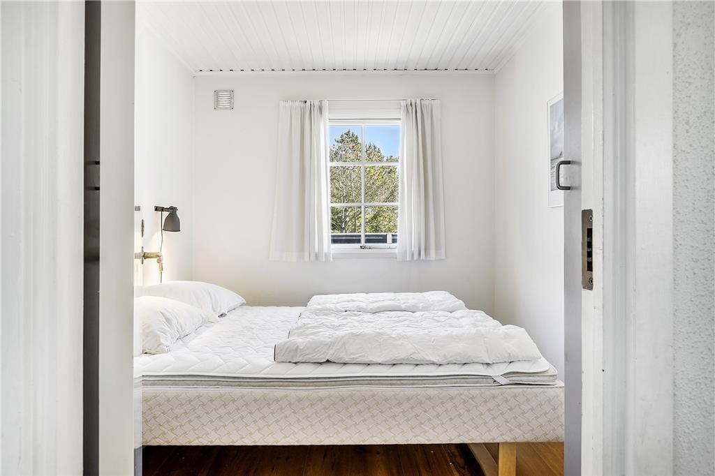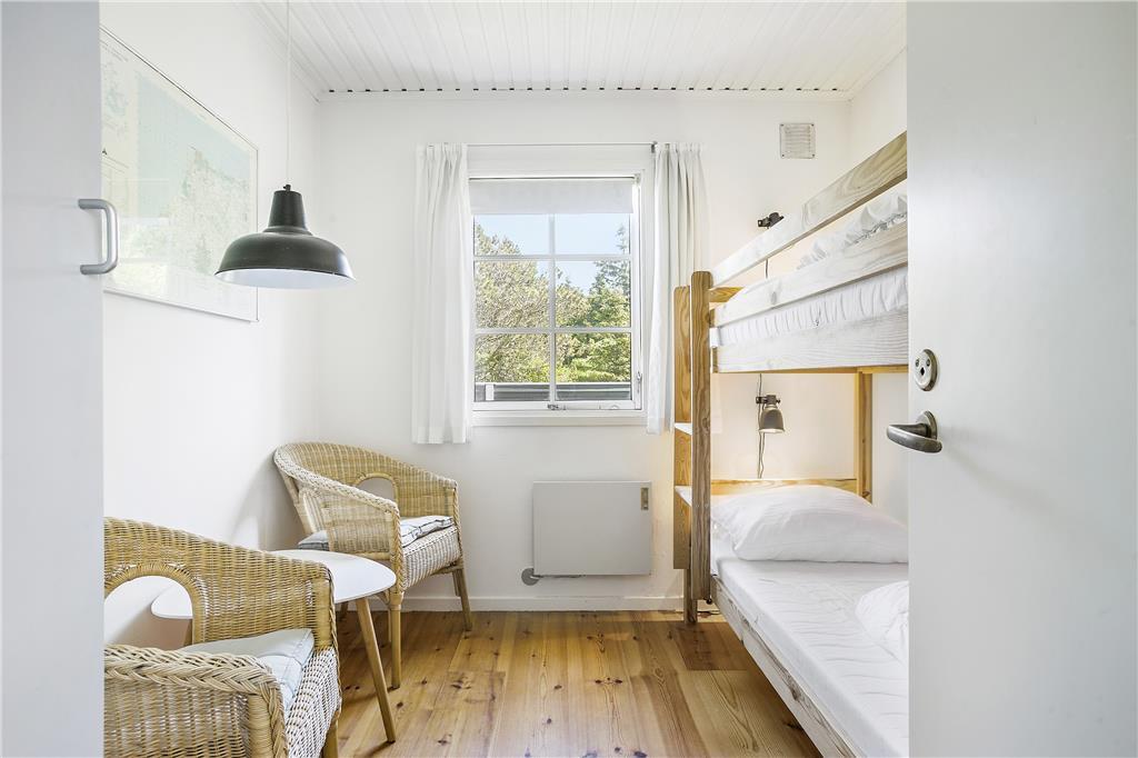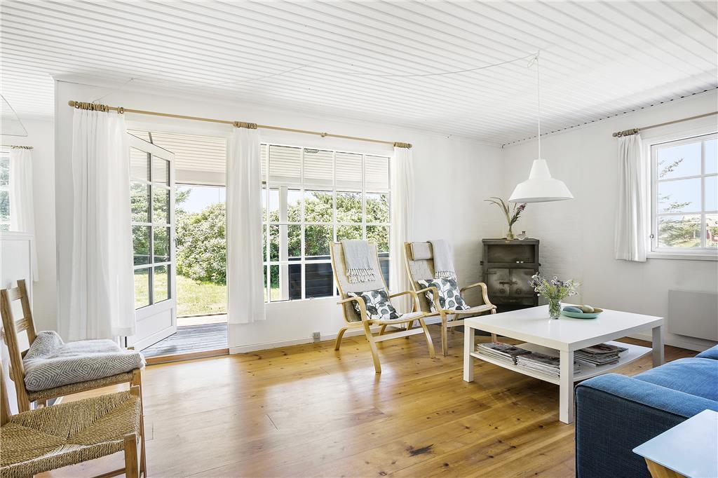 Den lyse, lette og personlige indretning og møbelvalget giver huset en ægte sommerhusstemning. Køkken og stue hænger sammen, så her er god plads til at hele familien kan befinde sig samme sted uden nødvendigvis at deltage i de samme aktiviteter. Bemærk at der ikke er fjernsyn i huset, men i den hyggelige sofakrog med brændeovn er det oplagt at hygge og spille brætspil med familien eller læse en god bog. Husets badeværelse er lyst og med bruseniche. Der er tre lyse soveværelser, to med dobbeltseng, hvoraf det ene har udgang til en terrasse, og et soveværelse med køjeseng.