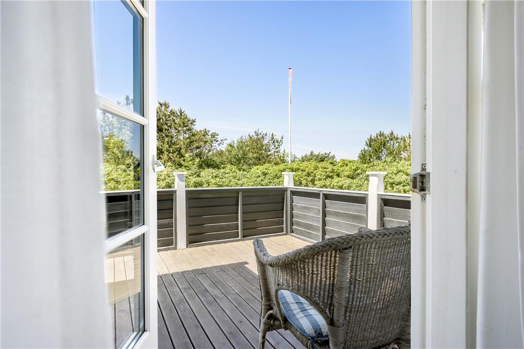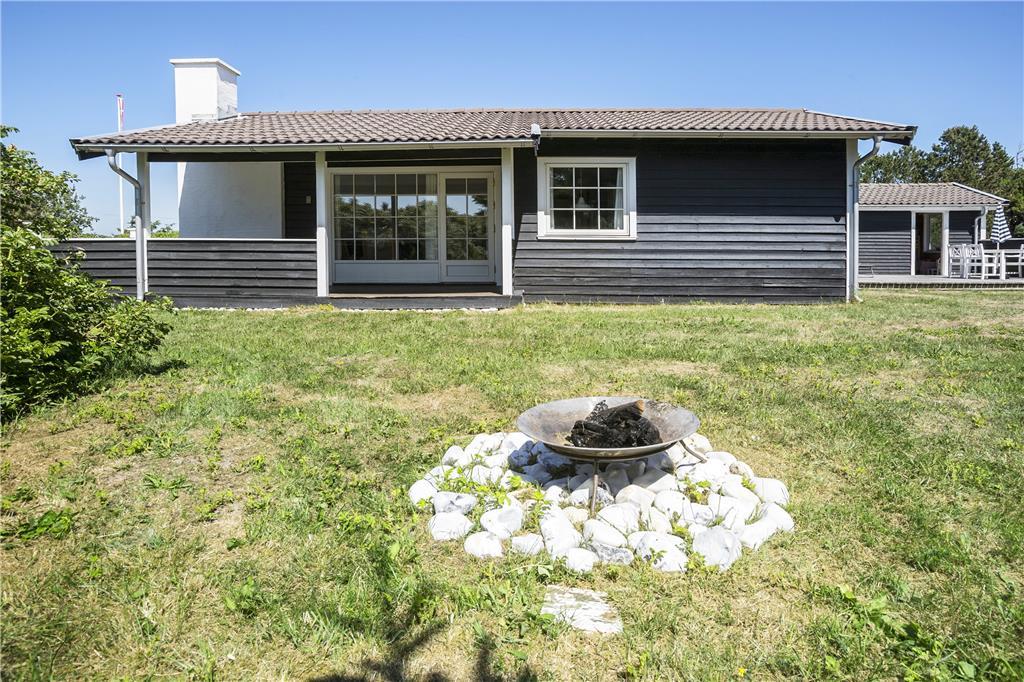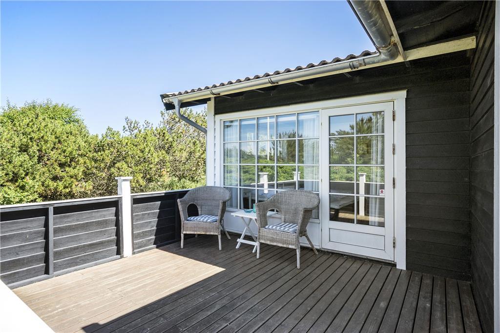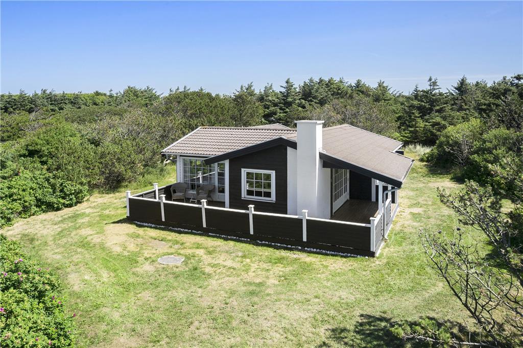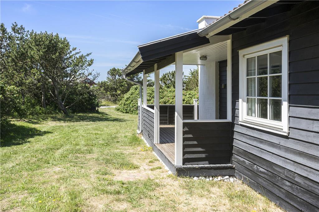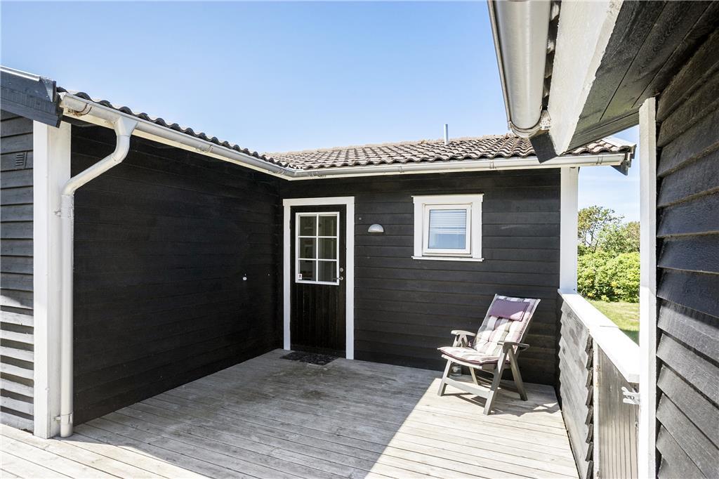 Huset ligger på en privat grund omgivet af træer og buske. Der er terrasser på flere af husets steder, og det er derfor næsten altid muligt at finde et område med læ eller en solskinsplet. En del af terrassen er overdækket. Til huset hører en grill og der er direkte udgang fra køkken-alrummet til en terrasse, så det er en mulighed at tilberede og nyde flere af feriens måltider udendørs.