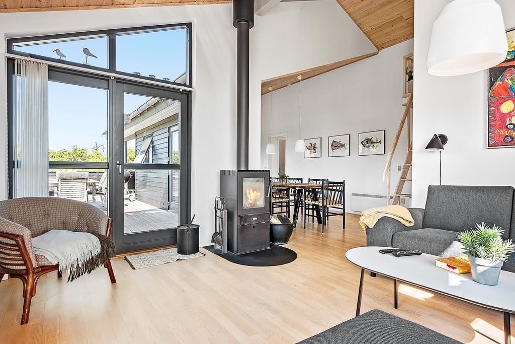 Velkommen til et skønt sommerhus med alt, hvad der er nødvendigt for en vellykket og afslappende ferie: hyggelig og smagfuld indretning, velfungerende hårde hvidevarer, god plads og praktisk opdeling med ét stort åbent opholdsrum, 3 værelser og to badeværelser. Det ene badeværelse har spa og sauna, så sommerhuset også har et strejf af luksus over sig. Her er helt ideelt til 2 par, som rejser sammen, men også for en familie med større børn,der kan hygge sig i fred og ro på den superskønne hems med to madrasser og tv; en lille hule hvor det hurtige bredbånd nok skal komme i anvendelse! Derudover er der en fin brændeovn i huset, som giver dejlig varme på kolde dage efter en frisk gåtur langs strandkanten. Et moderne og velfungerende sommerhus, som bare må opleves!