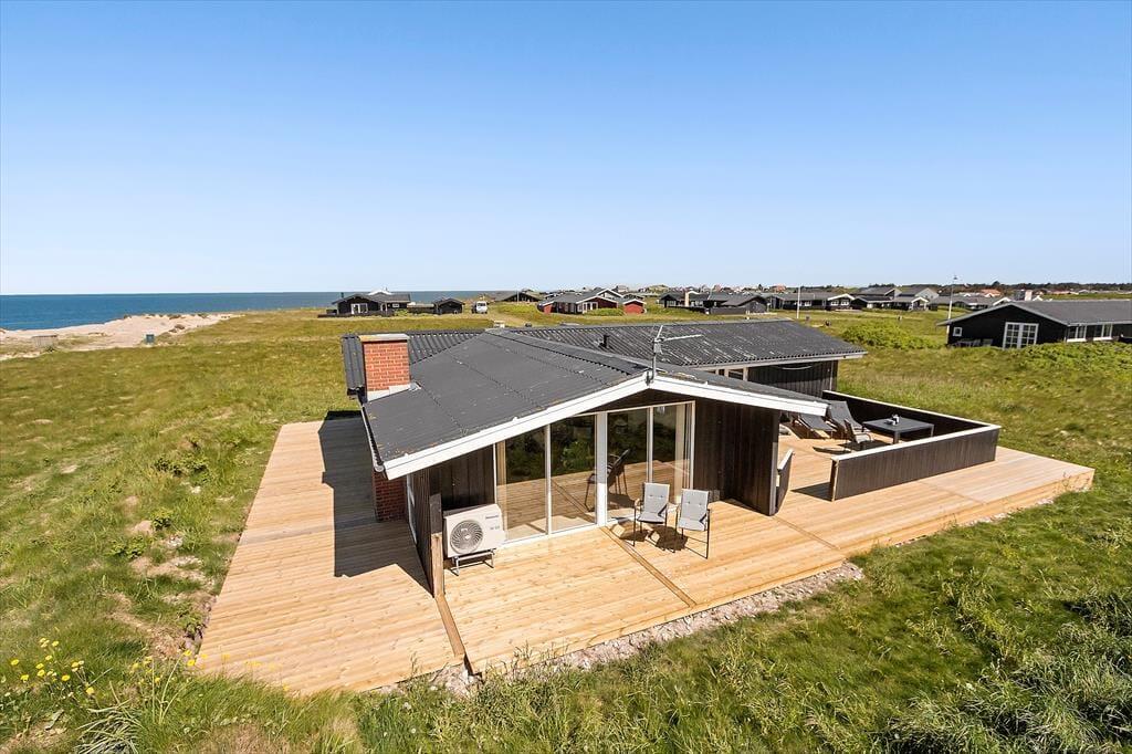 Udenfor venter en dejlig terrasse, hvor du kan slappe af med lyden af bølgerne i baggrunden og den friske havluft omkring dig. Sommerhusets beliggenhed, under 100 meter fra stranden, gør det nemt at tage en spontan dukkert eller gå en lang tur langs vandkanten. Her kan du mærke sandet mellem tæerne og nyde solnedgangen over horisonten – måske med et glas vin i hånden fra terrassens bedste udsigtsplads. Med gode havemøbler og en grill har du alle muligheder for at nyde ferielivet udendørs, uanset om du foretrækker solbadning, måltider under åben himmel eller ren afslapning i en liggestol.