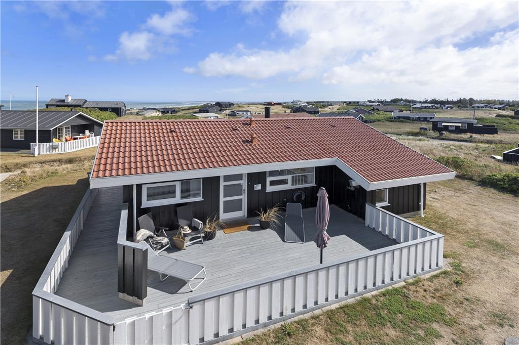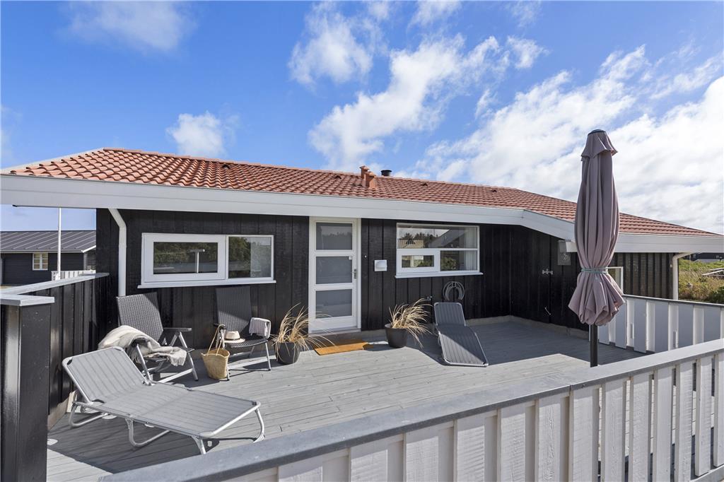 Når solen titter frem, indbyder sommerhusets terrasser til afslapning i det fri. Der er flere dejlige uderum at vælge imellem, og med både lækroge og åbne solpladser kan du altid finde den perfekte plads – uanset om du er til skygge og ro eller varme og liv. Tag morgenkaffen med ud i den friske luft, læg dig i en liggestol med en bog, eller gør grillen klar til aftensmaden, mens solen langsomt går ned over klitterne. Uanset hvor du slår dig ned, kan du høre Vesterhavets sagte brusen i baggrunden og mærke den salte havluft. Som gæst i huset får du desuden fri adgang til saunaen ved Lønstrup Strand – en oplagt mulighed for at forkæle dig selv med varme og velvære efter en lang dag med sand mellem tæerne og vind i håret.