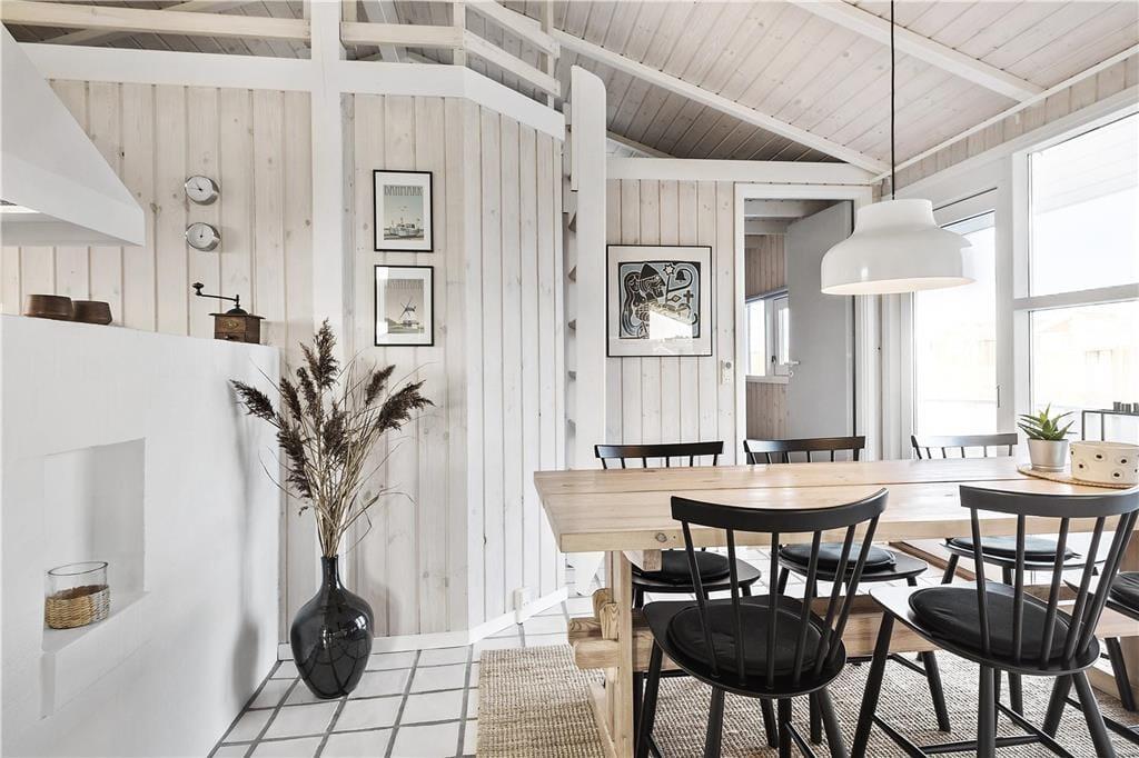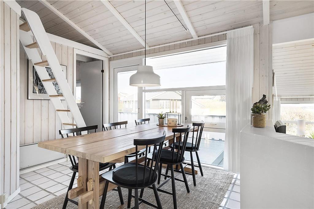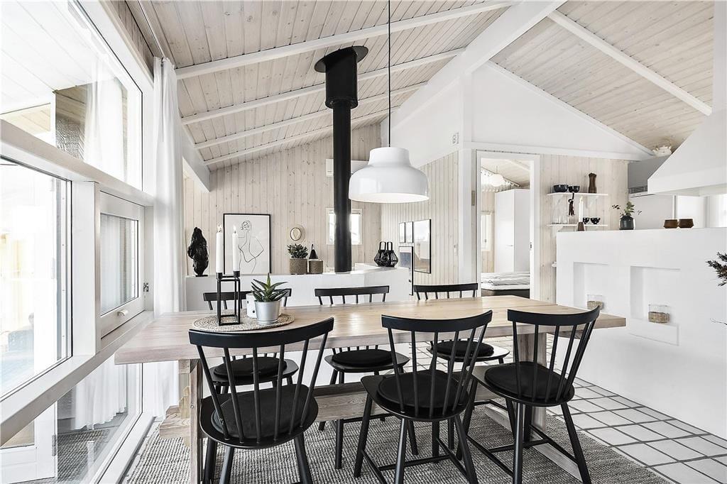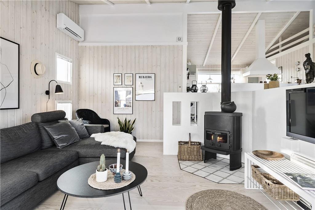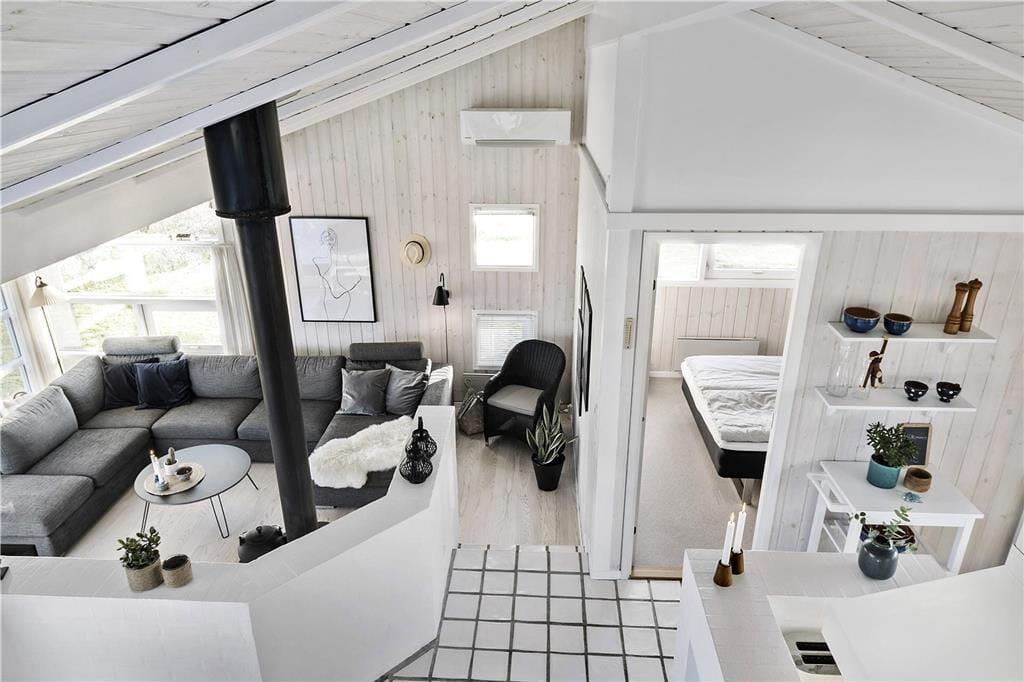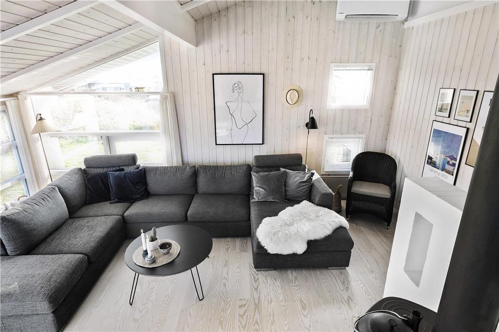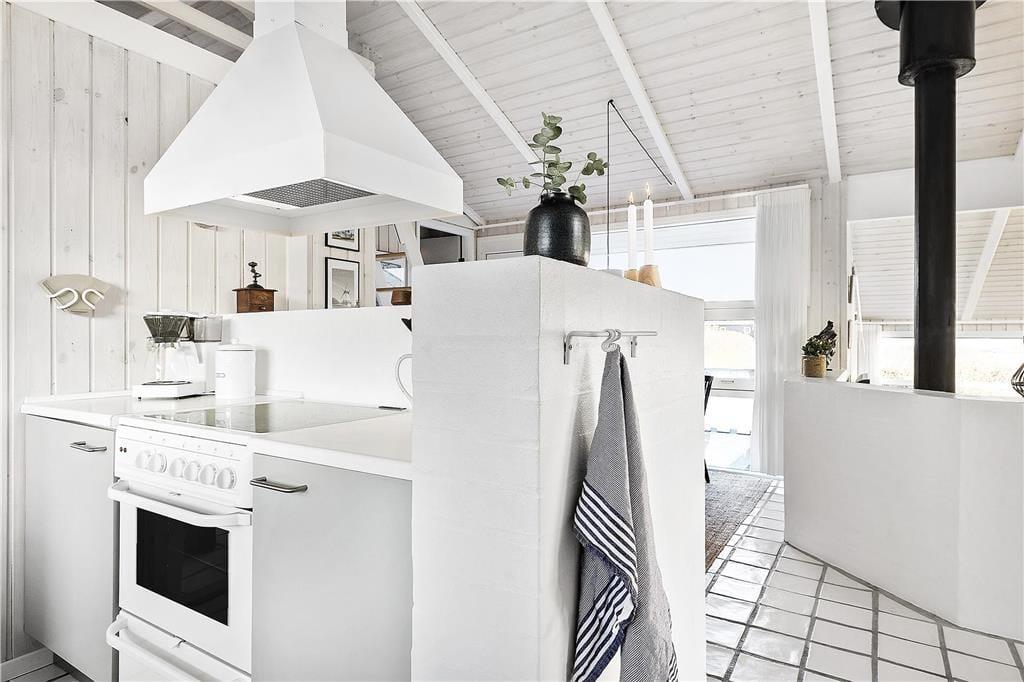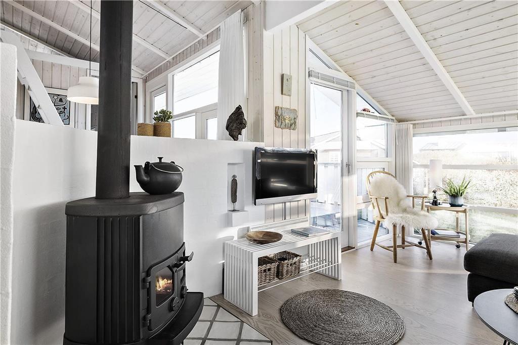 Indenfor bliver du mødt af en lys og indbydende indretning, hvor det stilrene interiør og de naturlige materialer skaber en rolig atmosfære. Den åbne forbindelse mellem køkken og stue gør det nemt at være sammen – også når maden skal forberedes, eller når dagen rundes af med en kop kaffe og snak om feriens oplevelser. Brændeovnen står klar til at sætte ekstra kulør på de kølige aftener, og dens knitren og varme flammer er næsten som balsam for sjælen. Store vinduespartier trækker naturen med indenfor, og fra stuen kan du lade blikket glide ud over landskabet og helt til horisonten, hvor Vesterhavet ofte glimter i solen eller ruller dramatisk under tunge skyer. Sommerhuset er velegnet til både børnefamilier og par, der ønsker en hyggelig og komfortabel base tæt på både hav og byliv.