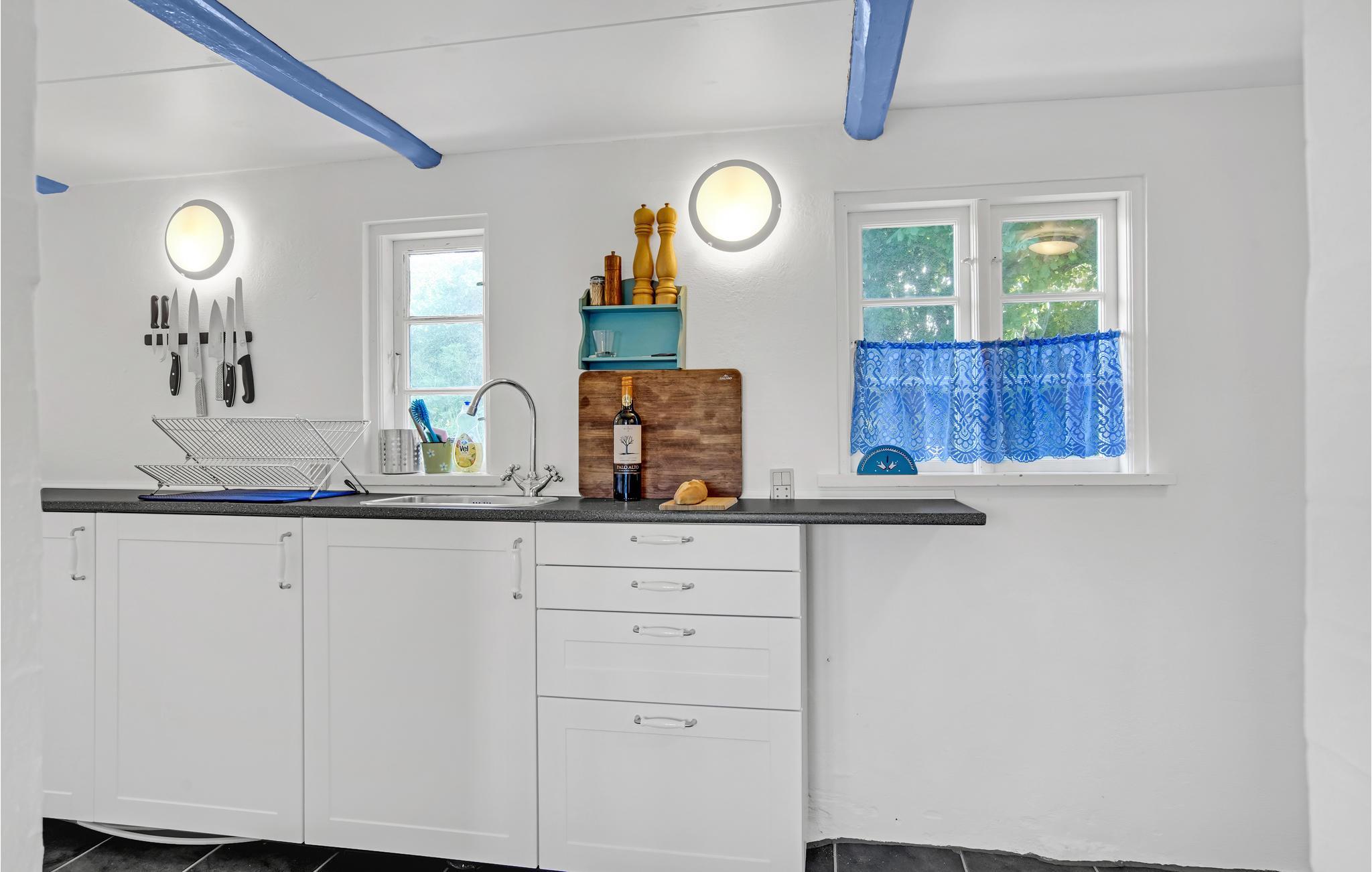 Se frem til et romantisk ophold for to personer i dette underskønne feriehus. Det hyggelige lille hus har et soveværelse, et badeværelse, et køkken og en stue. Tilbered lækre retter i det moderne køkken og nyd de afslappende aftener med ild i brændeovnen og en god bog i sofaen.