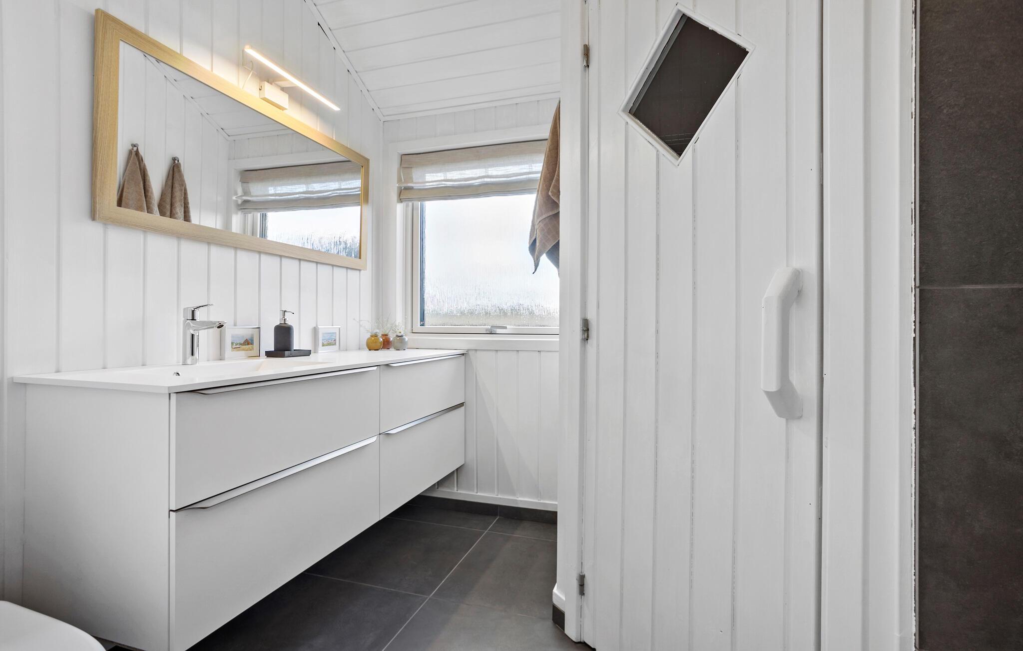 Dette sommerhus giver jer det ideelle udgangspunkt for en afslappet og varieret ferie. Her finder I alt hvad I skal bruge til en vellykket pause, uanset om I foretrækker rolige timer i huset eller at gå på opdagelse i området. Lad dagen starte afslappet og nyd en friskbrygget kop kaffe i det åbne køkken. I kan diskutere jeres planer for dagen rundt om det elegante spisebord. Den rummelige stue med komfortabelt sofaområde lægger op til at hygge med bøger og brætspil efter dagens oplevelser. De store vinduespartier lukker masser af dagslys ind i boligen, hvilket skaber en lys og venlig atmosfære.
