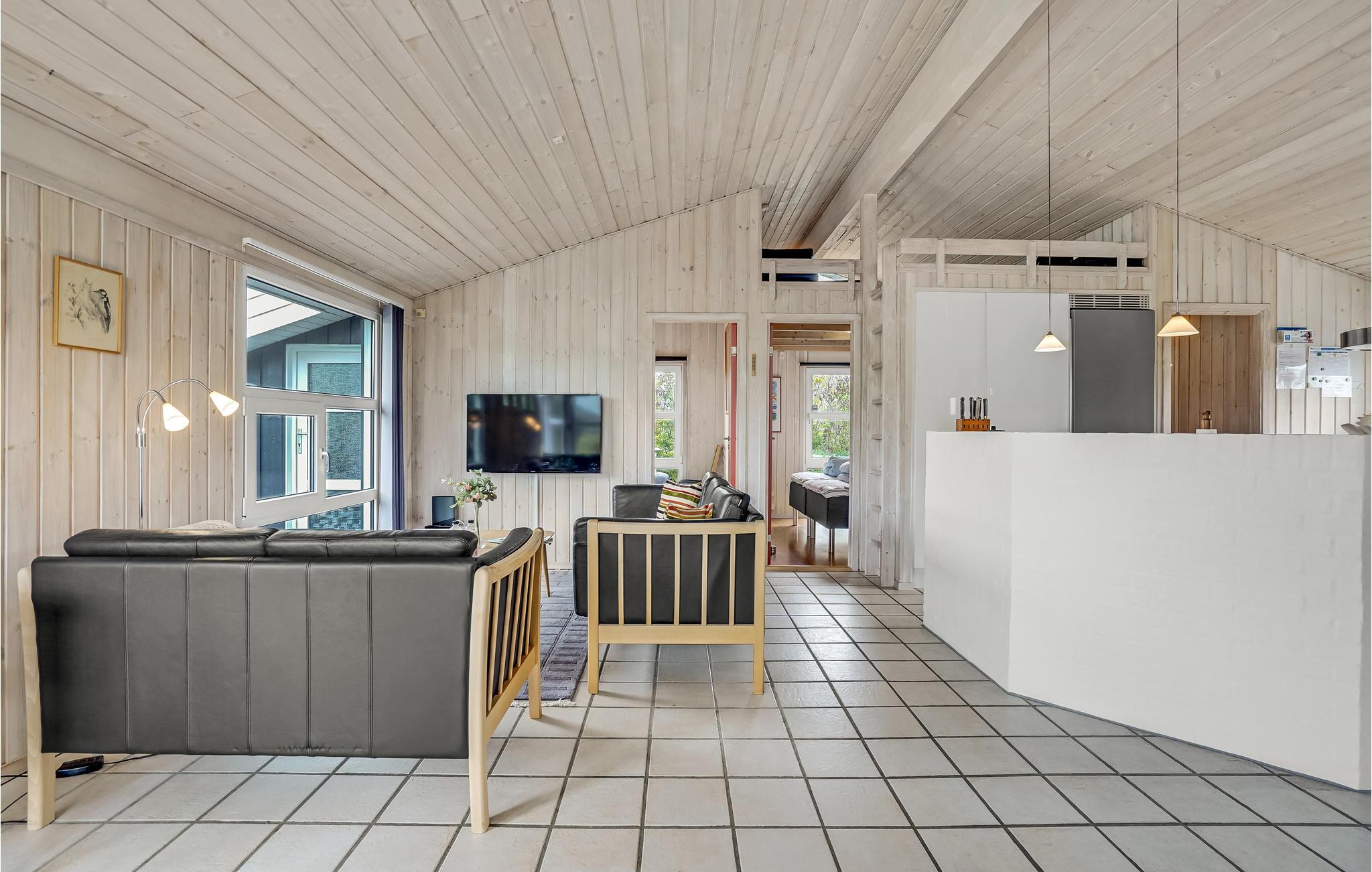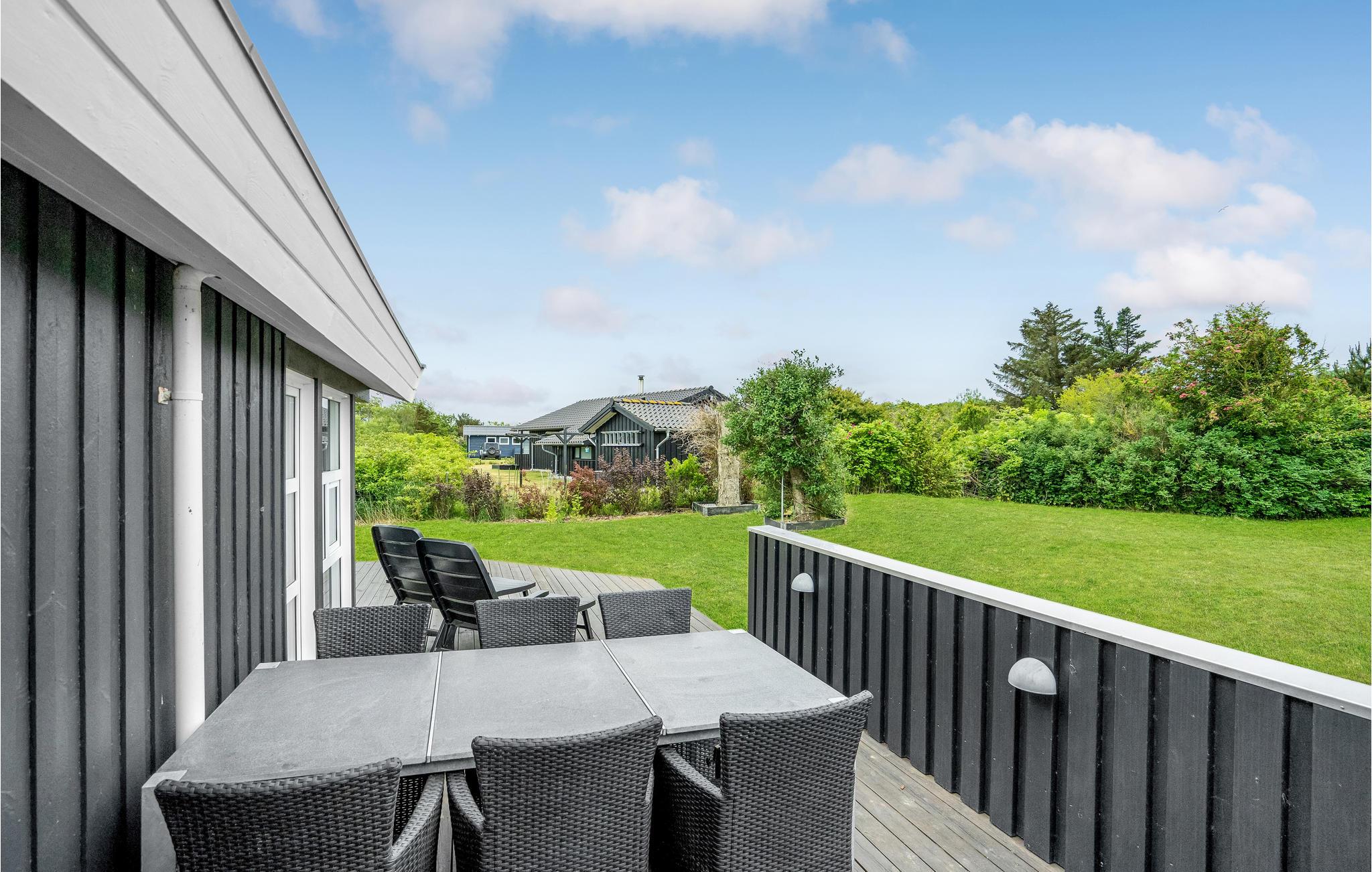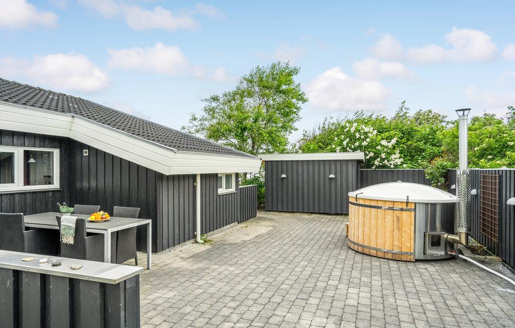 Glæd jer til nogle skønne dage i dette rummelige, lyse og praktisk indrettede feriehus. Over 100 m2 terrasser og den skønne, børnevenlige grund indbyder til solbadning, leg, sport, udendørsspil og hyggelige grillaftener. Op til tre kæledyr er også velkomne her, så hele familien kan holde ferie sammen. Takket være spa og sauna kan I se frem til rendyrket ferieafslapning, men hovedattraktionen er det lækre vildmarksbad, hvor en drink kan nydes om aftenen til den dejlige kombination af vildmarksbadets varme vand og den friske luft. En god feriedag kan afsluttes i opholdsstuen foran brændeovnen og fladskærmen, som er udstyret med Chromecast, således at I kan streame jeres yndlingsfilm- og serier.