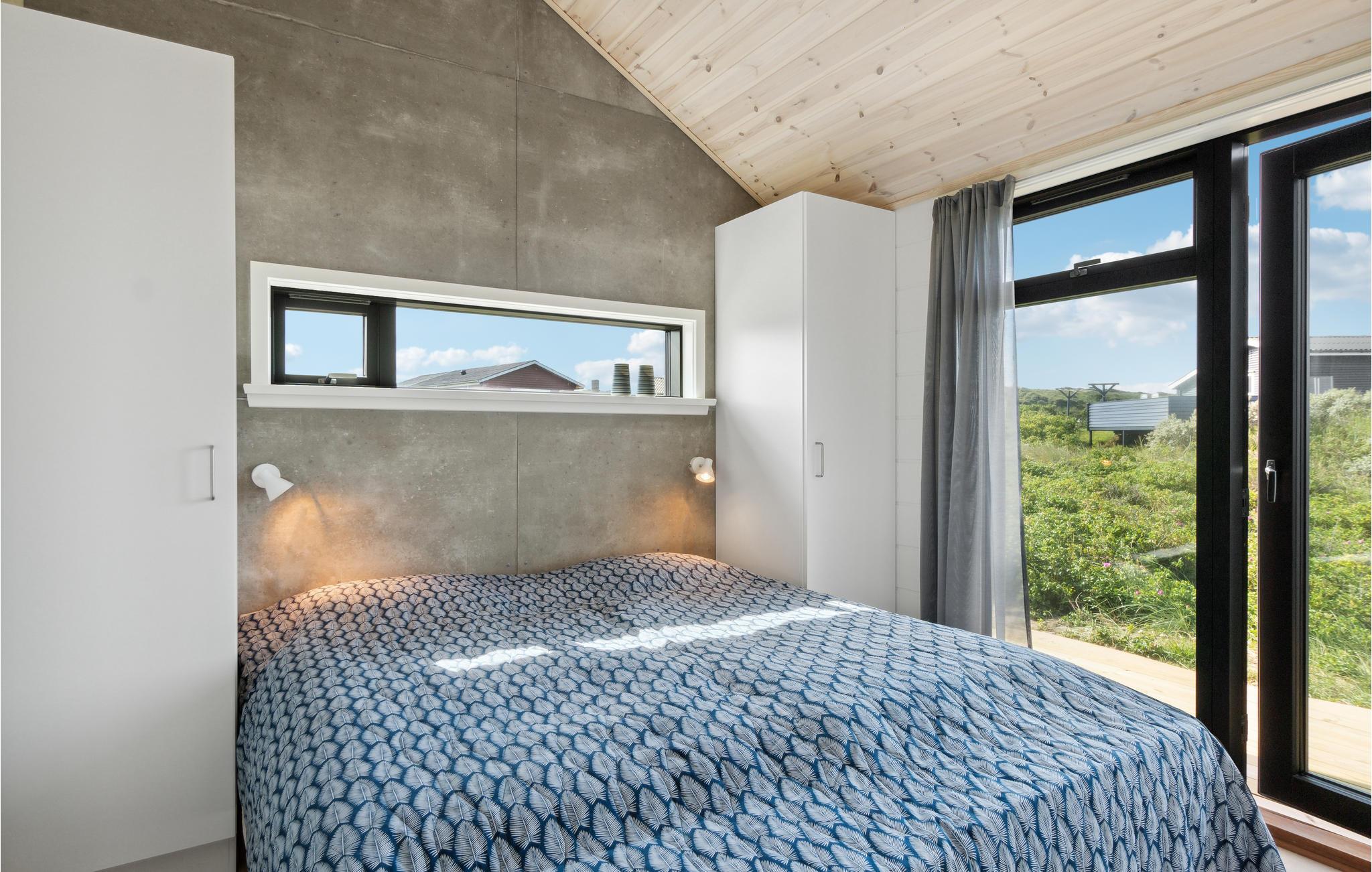 Lyst og moderne sommerhus i Lønstrup med delvis udsigt til Vesterhavet og store vinduespartier.