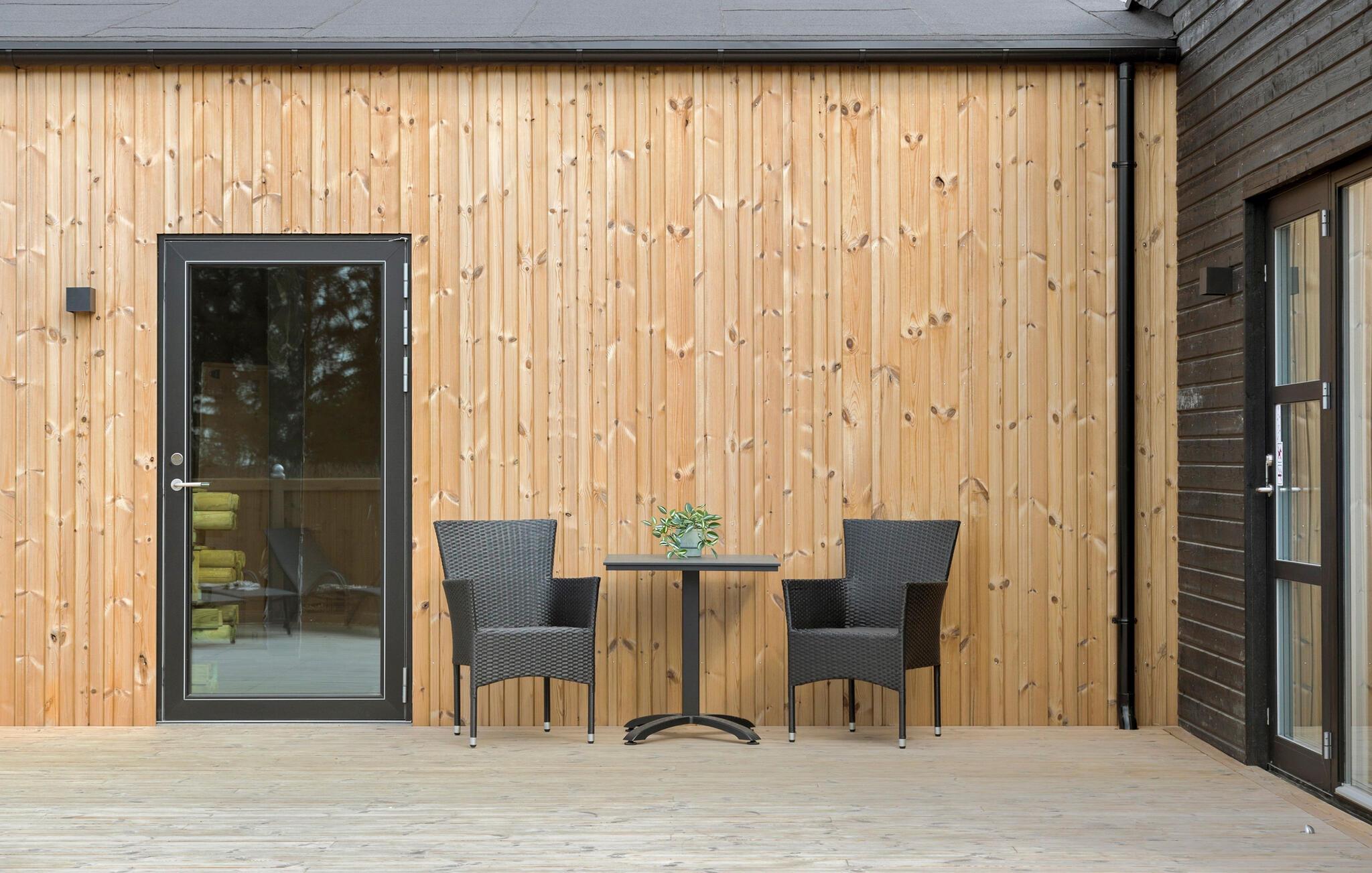 På de varme dage kan I trække ud på terrassen, der bliver jeres anden stue om sommeren. Begynd dagen her med en god kop kaffe og nyd solen, mens børnene løber rundt og leger med de mange fremragende legeredskaber. Ud på eftermiddagen kan I grille nogle saftige bøffer, mens I lægger planer for de kommende dage. Og måske aftenen skal rundes af med en tur i vildmarksbadet?