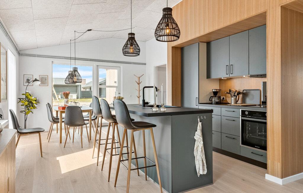 Hvis I er på udkig efter en flot og veludstyret bolig til årets familieferie, er dette lækre træhus ved Lønstrup det helt rette valg for jer. Indretningen fremtræder stilsikkert og elegant med fine udsmykningsdetaljer og store vinduespartier, der giver det indre et lyst og luftigt udtryk. Nyd godt af de gode møbler og faciliteter og tilbered familiens livretter det moderne køkken, inden I runder en hyggelig feriedag af med brætspil eller en god film i stuen.