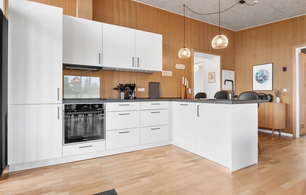 Velkommen til dette lækre hus, der ligger på en stor grund i naturskønne omgivelser ikke langt fra Lønstrup og stranden. Her får I dejlige lysindfald gennem de store vinduespartier, der samtidig giver en skøn udsigt til det grønne. Huset er flot indrettet med en åben planløsning, komfortable møbler og et fuldt udstyret køkken, hvor familiens kokke kan tage sig god tid med at kræse om livretterne. Efter aftensmaden kan I slå jer ned i sofahjørnet med lidt gode snacks og en god film på tv'et, og skal I gøre det lidt ekstra godt for jer selv, kan I forkæle jer med en lækker aftentur i saunaen.