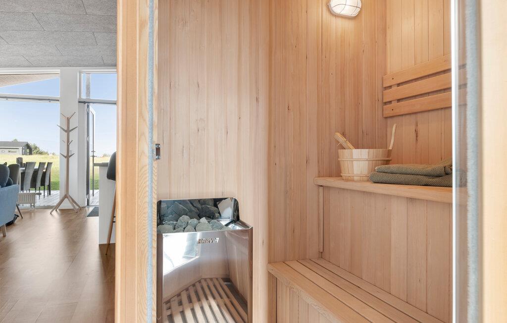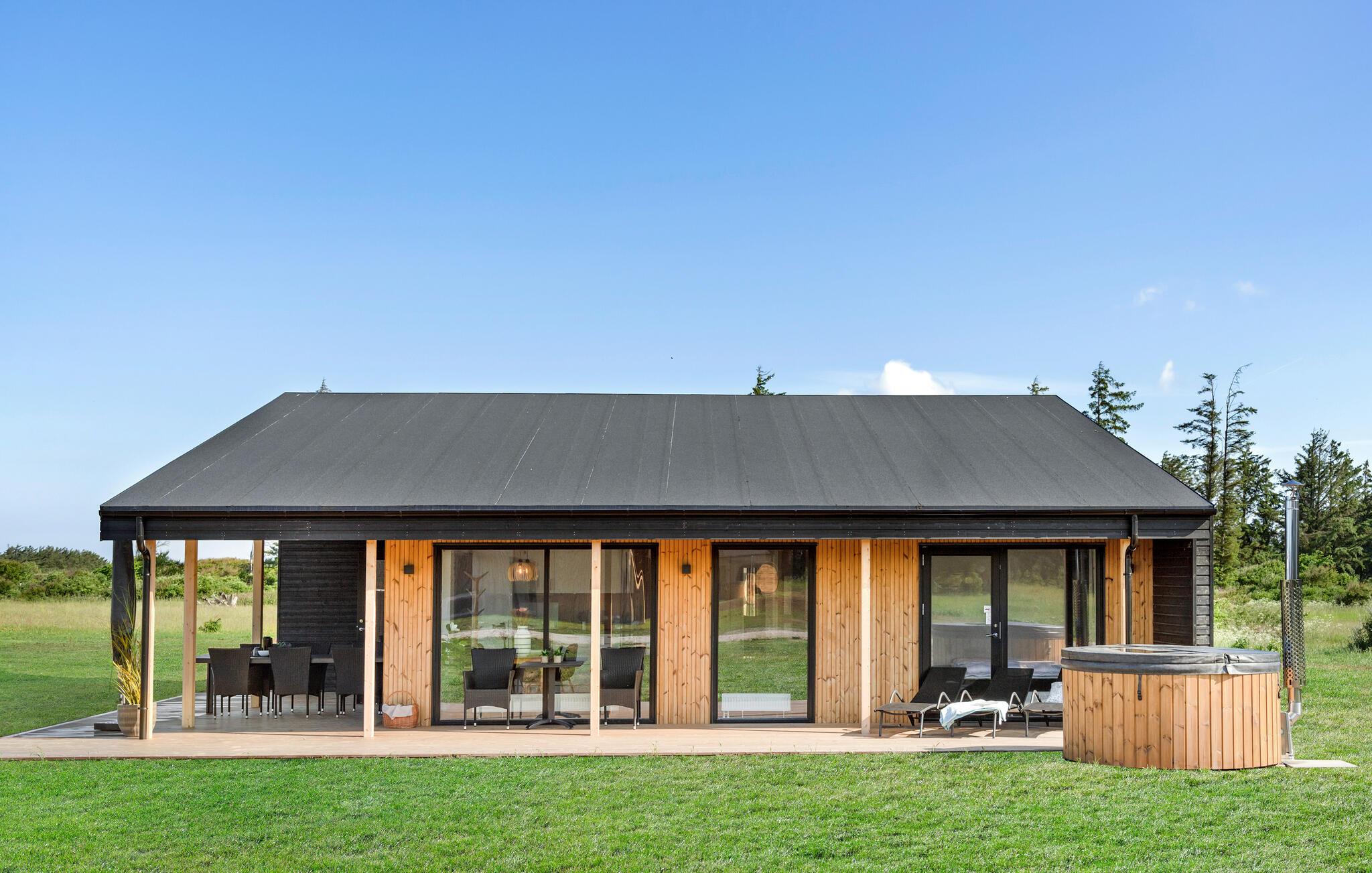 Nyd en moderne ferie i et kvalitets fritidshus med sauna og vildmarksbad nær Lønstrup strand.