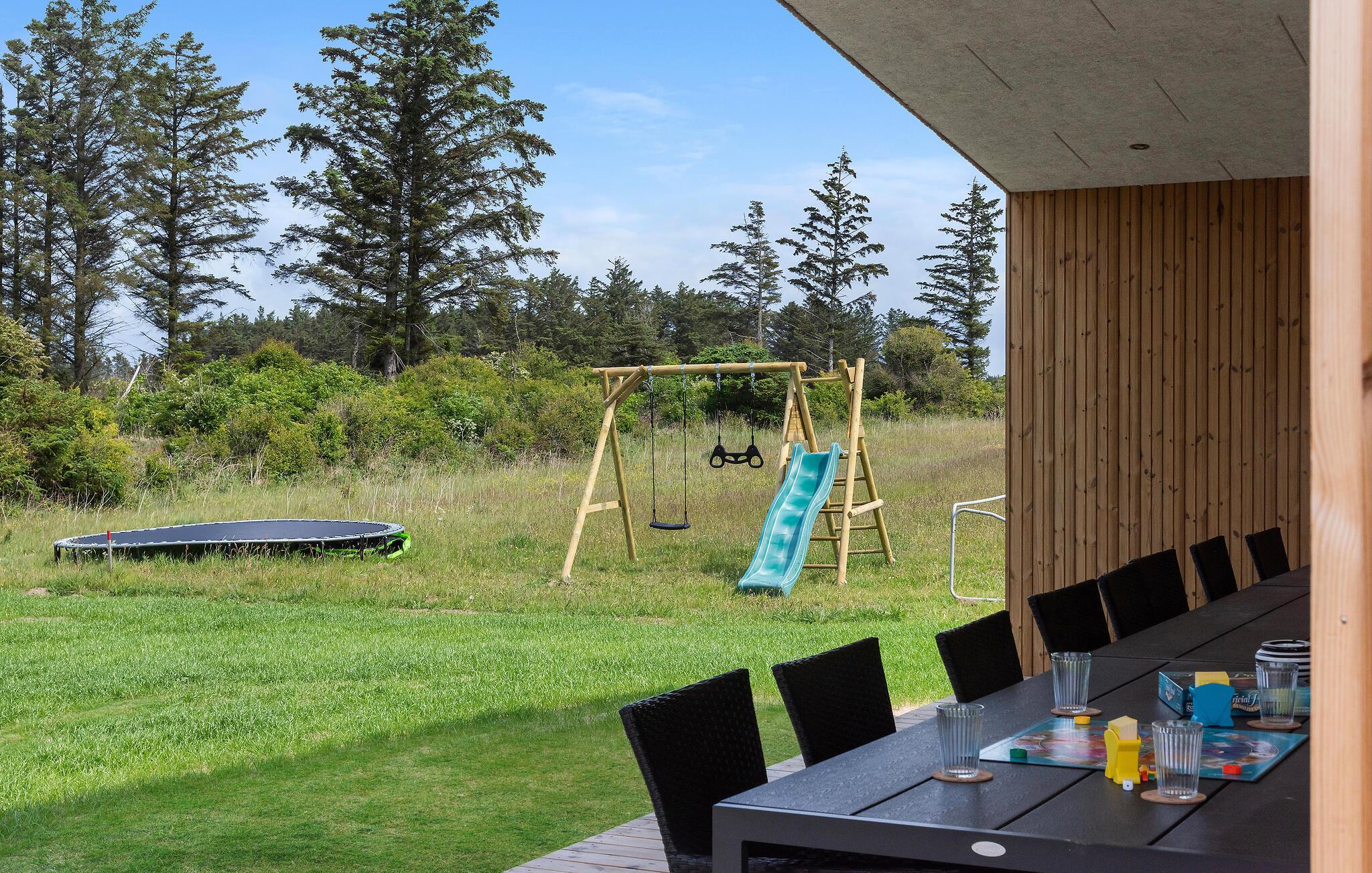 Fra den elegante, delvist overdækkede terrasse har I en fantastisk udsigt over det store område. Børnene kan se frem til et stort udvalg af legemuligheder. Fordyb jer i en god bog i liggestolen, læn jer tilbage i spabadet og dæk op til den store grillmiddag om aftenen.