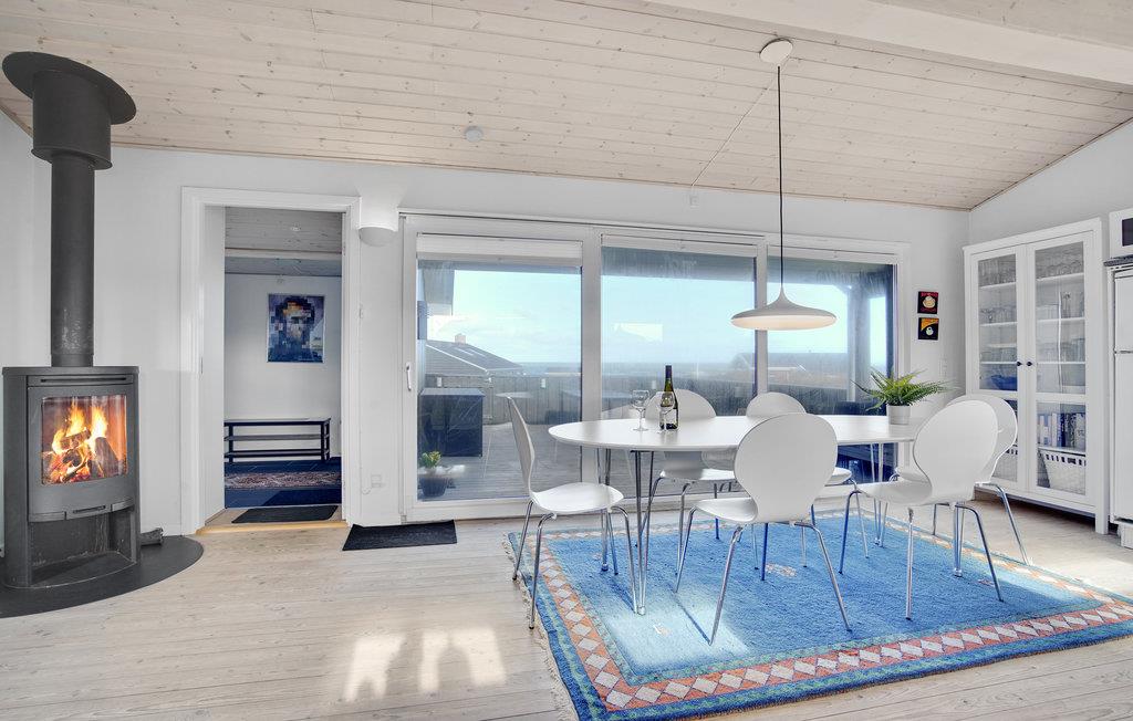 Fra dette fantastiske feriehus der ligger højt i klitterne, er der den mest fantastiske udsigt over havet og ligeså imponerende udsigt over området. Huset er gennemmoderniseret og udvidet, så her nu er en rummelig entre med garderobe, med døre ind til to soveværelser med faste skabe. Der er et lyst og moderne badeværelse. Husets hjerte er stuen og køkkenet i åben forbindelse. I stuen skaber loft til kip en skøn luftig fornemmelse. Det praktiske køkken er holdt i hvidt. Rundt om huset findes der lækre terrasser med små hyggekroge, så her altid er læ, skygge eller sol. I bor ikke langt fra Lønstrup by, der er kendt for hyggeligt bymiljø med kunsthåndværkere, cafeer og Skallerup Seaside Resort.