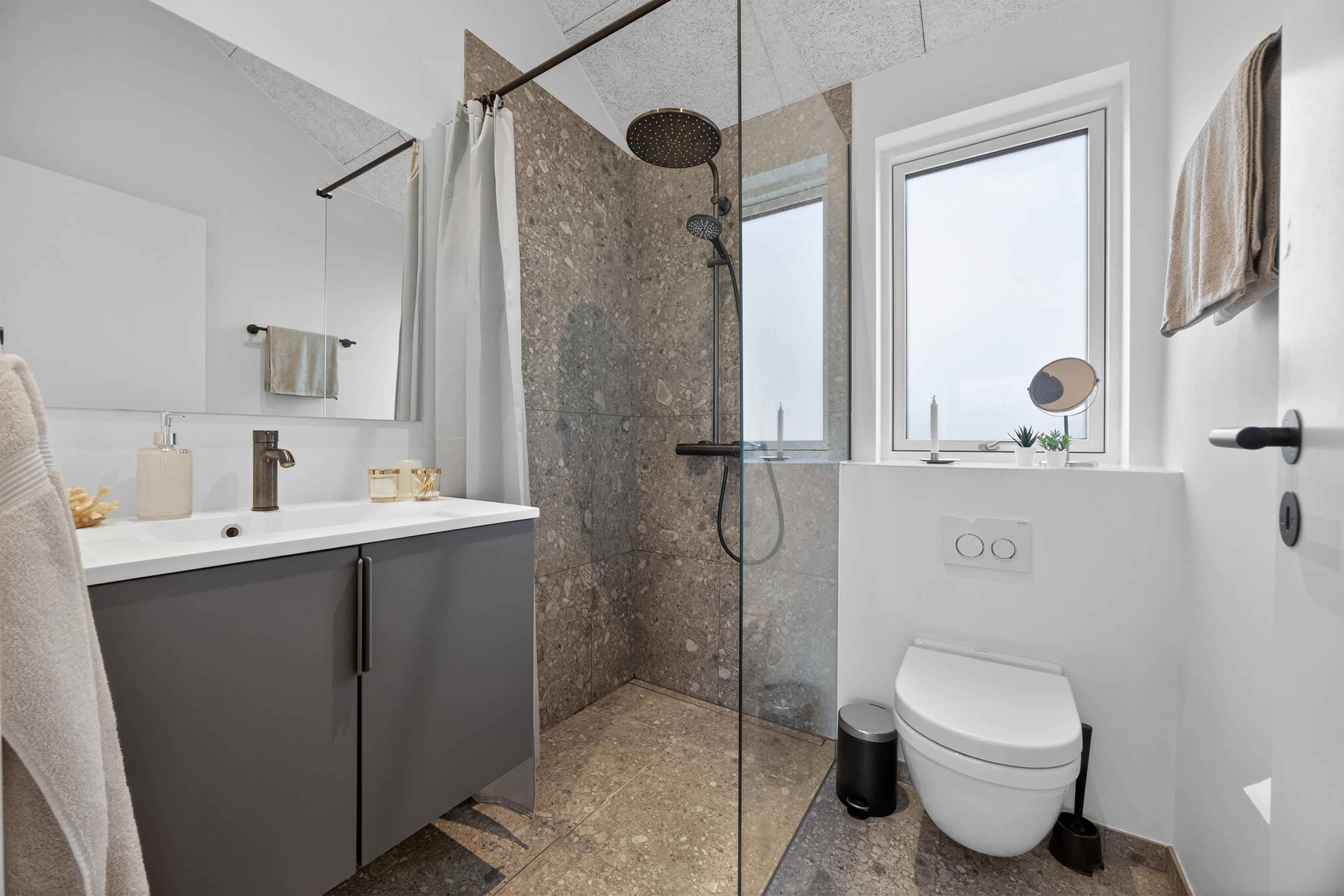 Opholdsrummet er oplagt til både afslapning og hyggestunder med spil, mens det veludstyrede køkken gør madlavningen til en fornøjelse for hele familien. Overalt i huset sørger behagelig gulvvarme for ekstra komfort – uanset årstiden.
