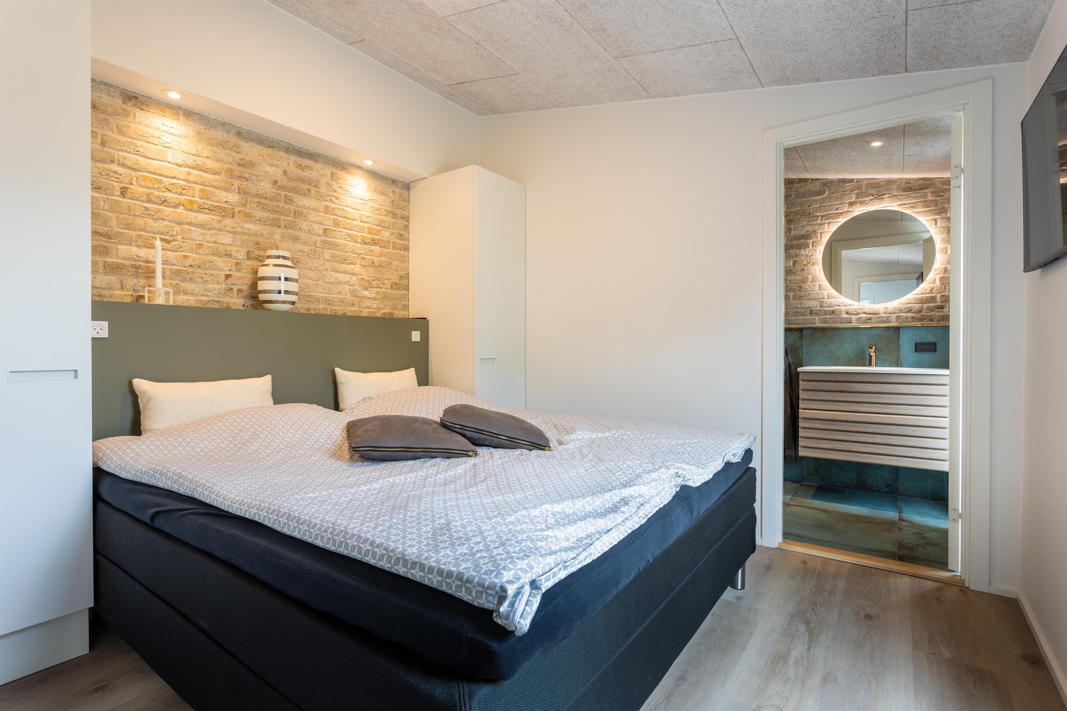 Allerede fra du ankommer til adressen, vil du bemærke, at her er kælet for detaljerne. Du træder ind i en dejlig rummelig entré, hvorfra der til den ene side er adgang til "master bedroom" med eget badeværelse. Til den anden side finder du et dejligt, stort badeværelse med spa til to personer.