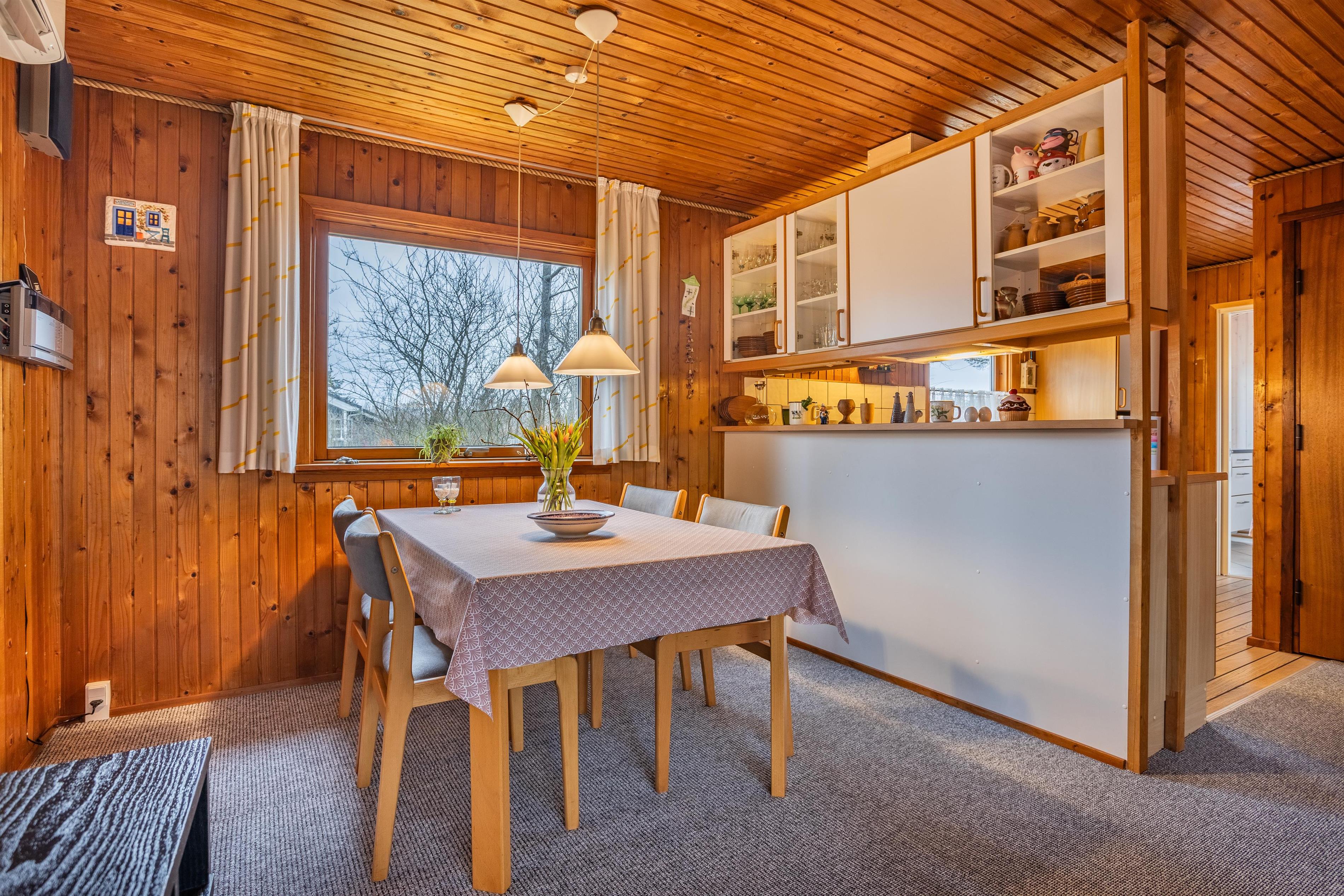 Dette meget velholdte feriehus er funktionelt indrettet med fokus på hygge og komfort. Når I træder ind, møder I et rummeligt bryggers med god plads til sko og overtøj, inden I bevæger jer videre ind i det lille, hyggelige køkken. Her kan I samles om madlavningen og nyde den hjemlige atmosfære, mens dagens oplevelser bliver vendt. Opholdsrummet er hyggeligt og indrettet med en stor sofagruppe, der indbyder til spil og afslappende stunder med familien. På de kølige vinteraftener skaber brændeovnen en behagelig varme og en helt særlig stemning i huset. Huset rummer desuden tre gode soveværelser og et dejligt badeværelse. Med blot 800 meter til stranden er huset perfekt til jer, der ønsker en ferie tæt på naturen. En kort gåtur fører jer ned til den fine sandstrand, hvor I kan nyde alt fra afslappende dage i solen til forfriskende gåture langs vandet.