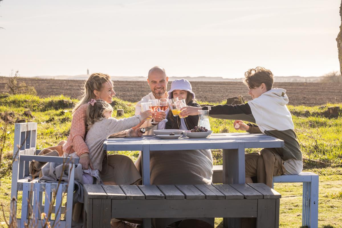 Kombinationen er ideel, hvis I er familier eller vennepar, som gerne vil hygge og spise sammen - men samtidig have muligheden for at kunne trække jer tilbage i jeres egen feriebolig.