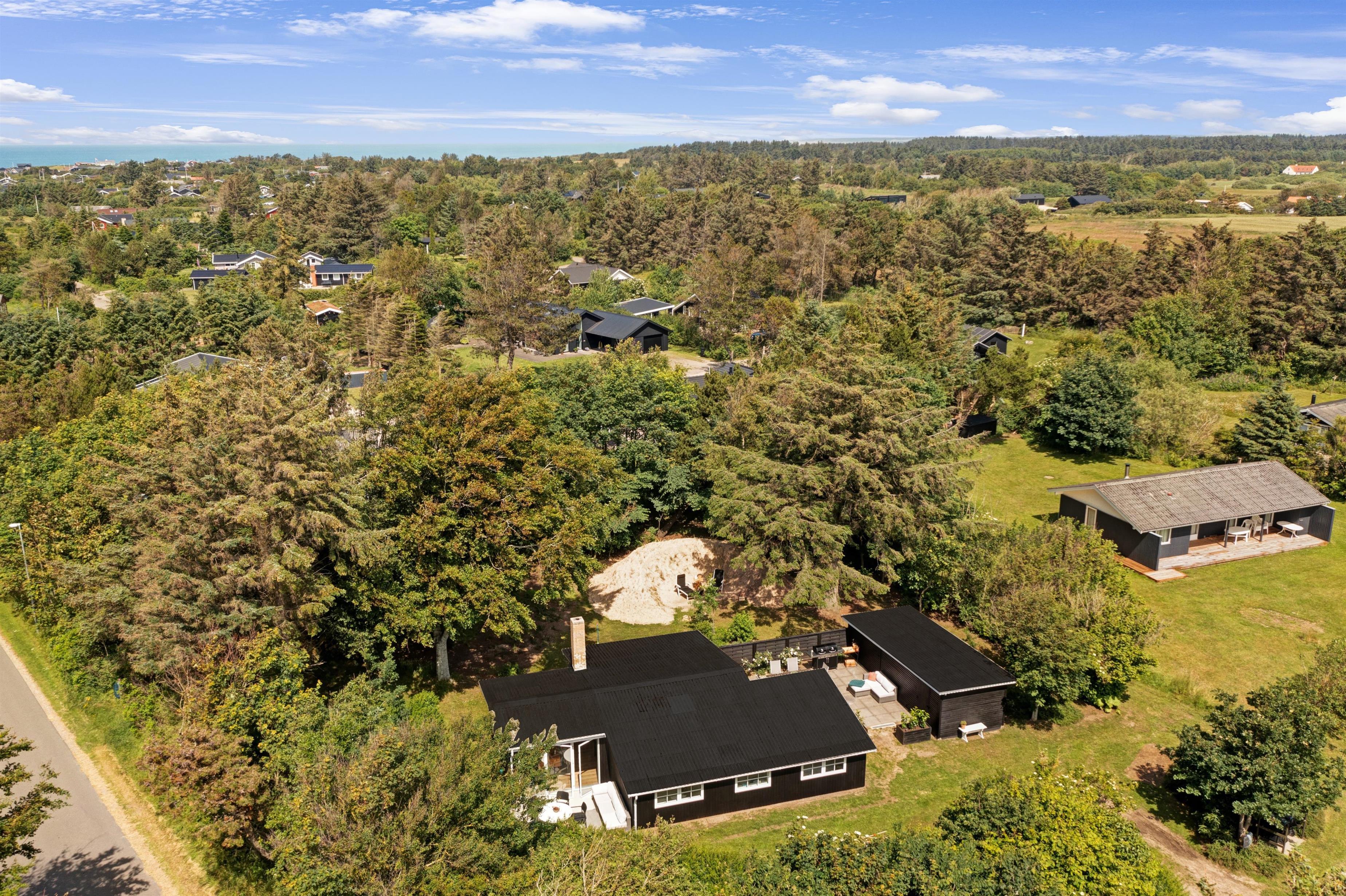 Når sommeren viser sig fra sin bedste side, er der masser af udendørsareal til solbadning, spil og leg. Sommerhuset ligger på en skøn grund, og der er terrasse i alle solbeskinnede vinkler, så det skulle være muligt at finde en skøn plads i sol eller læ. Du er under en kilometer fra stranden og Lønstrup by. Inden for en kort radius har du derfor indkøbs- og transportmuligheder samt restauranter, kunstbutikker mm. Er der ikke vejr til at være ude, kan du hoppe i den store jacuzzi i husets anneks, hvor I også kan sove to personer. I annekset er eget køkken og badeværelse.