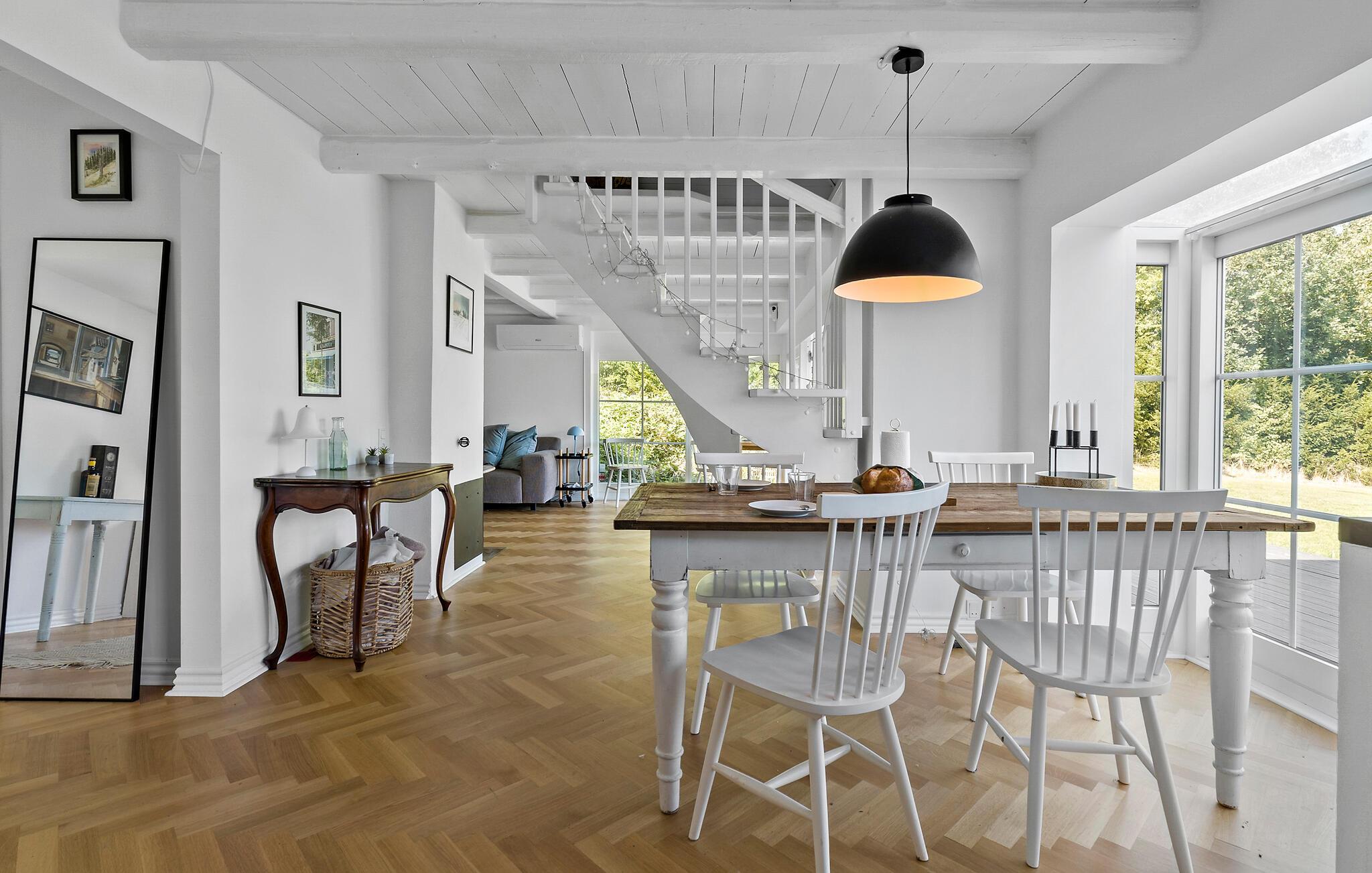 Selve ferieboligen er noget særligt med sin lyse, moderne stil og et åbent rumdesign, der lægger op til at blive hængende. Find jer godt til rette på den hyggelige sofa foran pejsen og nyd en afslappende aften. Det veludstyrede køkken byder på alt, hvad I skal bruge for at tilberede lækre måltider og er et ideelt sted for sociale madlavningsaftener med venner eller familie.