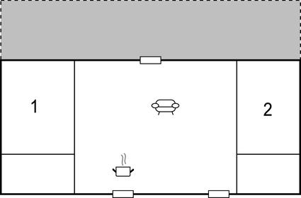 Soveværelse (nr. 1) - 2 Sovepladser. (Sofa, madras eller lignende).