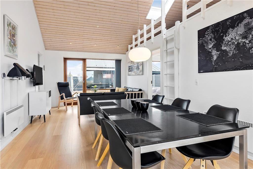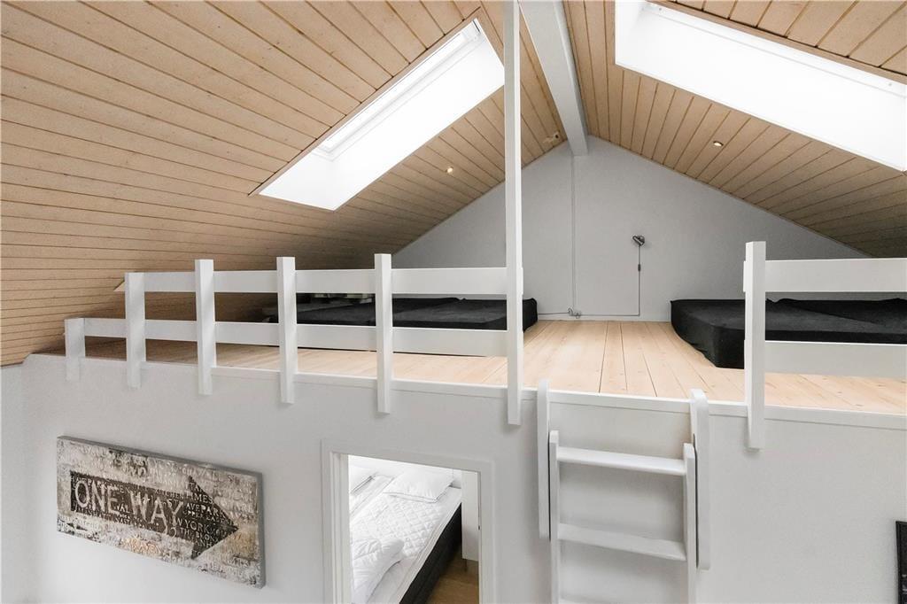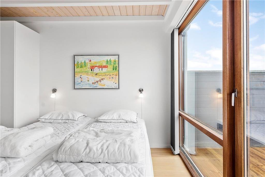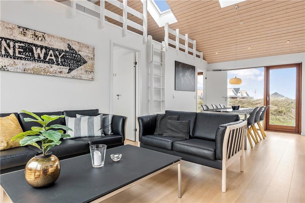 Flot arkitektur, komfortabelt interiør og det skønneste lysindfald spiller smukt sammen og gør det til en ren fornøjelse at holde ferie i sommerhuset, der er opført i 2008. At sommerhuset er et kvalitetsbyggeri kan ses i alle rum – selv på badeværelset, der på lækker vis er udstyret med gulvvarme og spabad. I opholdsrummet inviterer store vinduespartier masser af dagslys indenfor, og så er der for øvrigt loft til kip, hvilket bidrager til den lette og luftige atmosfære. Her findes også et moderne smart TV. Et stilfuldt og veludstyret køkken er integreret med stuen, så madlavningen kan nemt blive del af de fælles ferieaktiviteter. Køkkenet er desuden udstyret med en varmepumpe med air condition. Er der børn med på ferien, vil de formentlig hurtigt udnævne opholdsrummets hems som deres foretrukne hyggekrog. Hemsen fungerer desuden som supplement til sommerhusets to soveværelser, og derudover i annekset som kan opvarmes også en dobbeltseng.