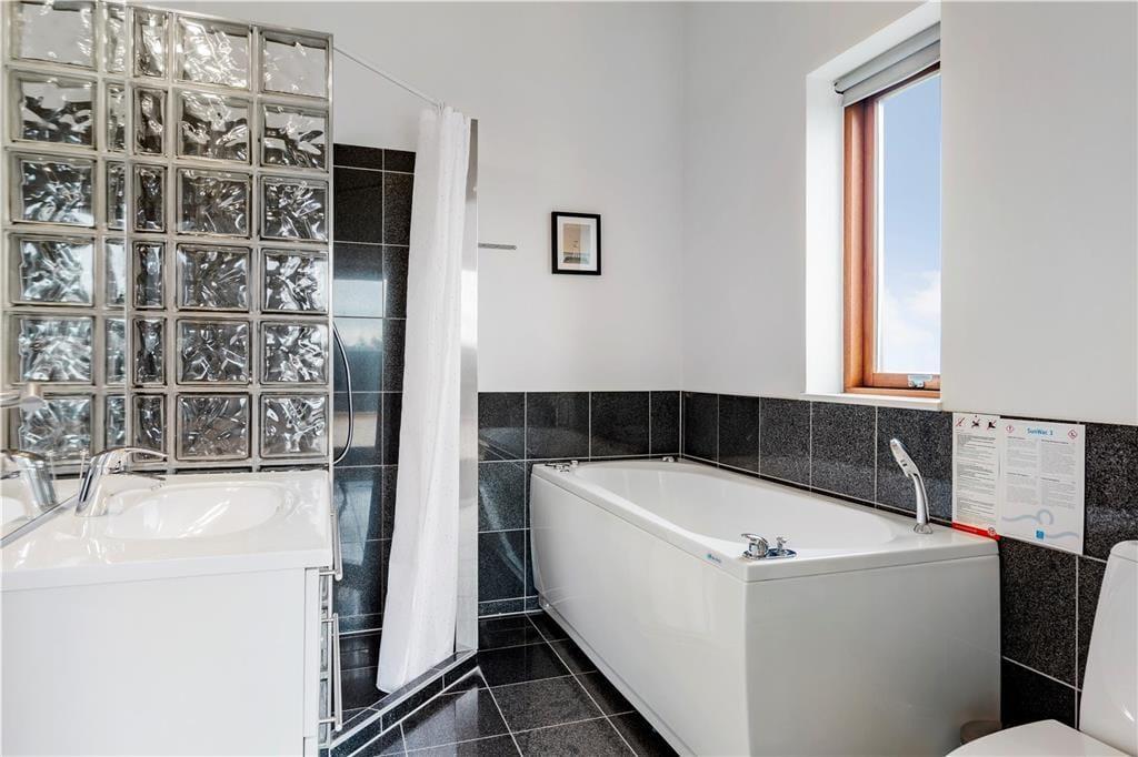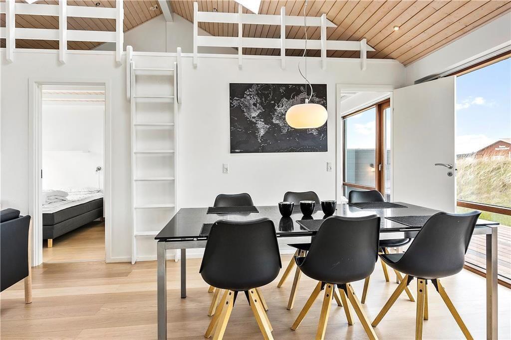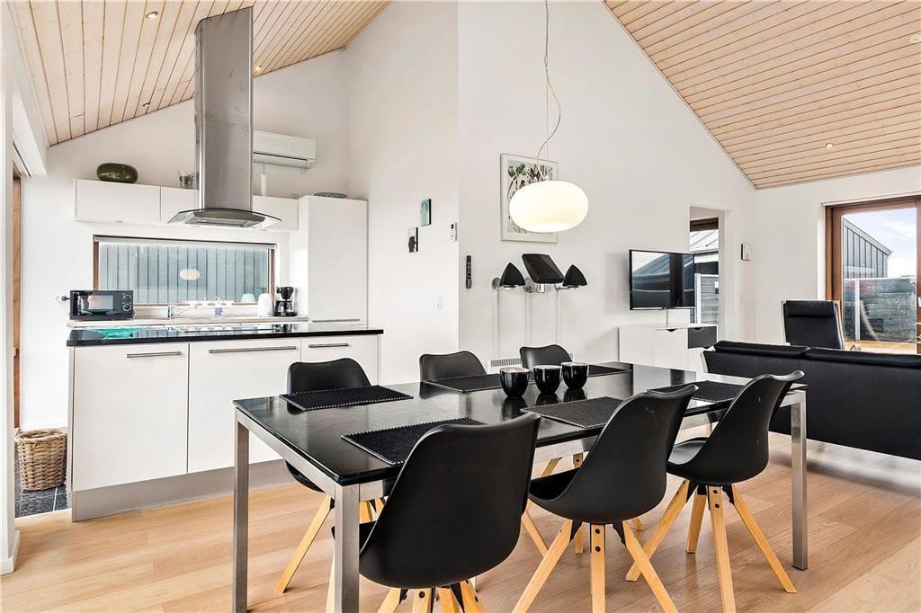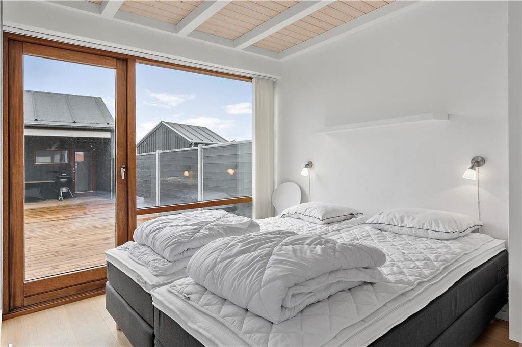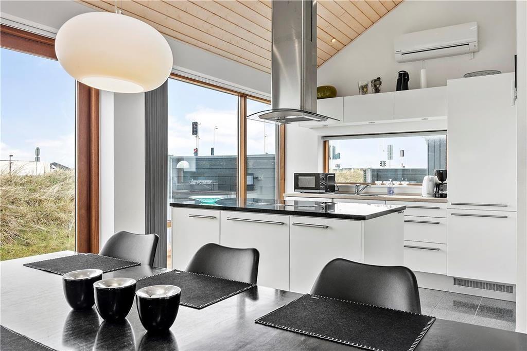Flot arkitektur, komfortabelt interiør og det skønneste lysindfald spiller smukt sammen og gør det til en ren fornøjelse at holde ferie i sommerhuset, der er opført i 2008. At sommerhuset er et kvalitetsbyggeri kan ses i alle rum – selv på badeværelset, der på lækker vis er udstyret med gulvvarme og spabad. I opholdsrummet inviterer store vinduespartier masser af dagslys indenfor, og så er der for øvrigt loft til kip, hvilket bidrager til den lette og luftige atmosfære. Her findes også et moderne smart TV. Et stilfuldt og veludstyret køkken er integreret med stuen, så madlavningen kan nemt blive del af de fælles ferieaktiviteter. Køkkenet er desuden udstyret med en varmepumpe med air condition. Er der børn med på ferien, vil de formentlig hurtigt udnævne opholdsrummets hems som deres foretrukne hyggekrog. Hemsen fungerer desuden som supplement til sommerhusets to soveværelser, og derudover i annekset som kan opvarmes også en dobbeltseng.