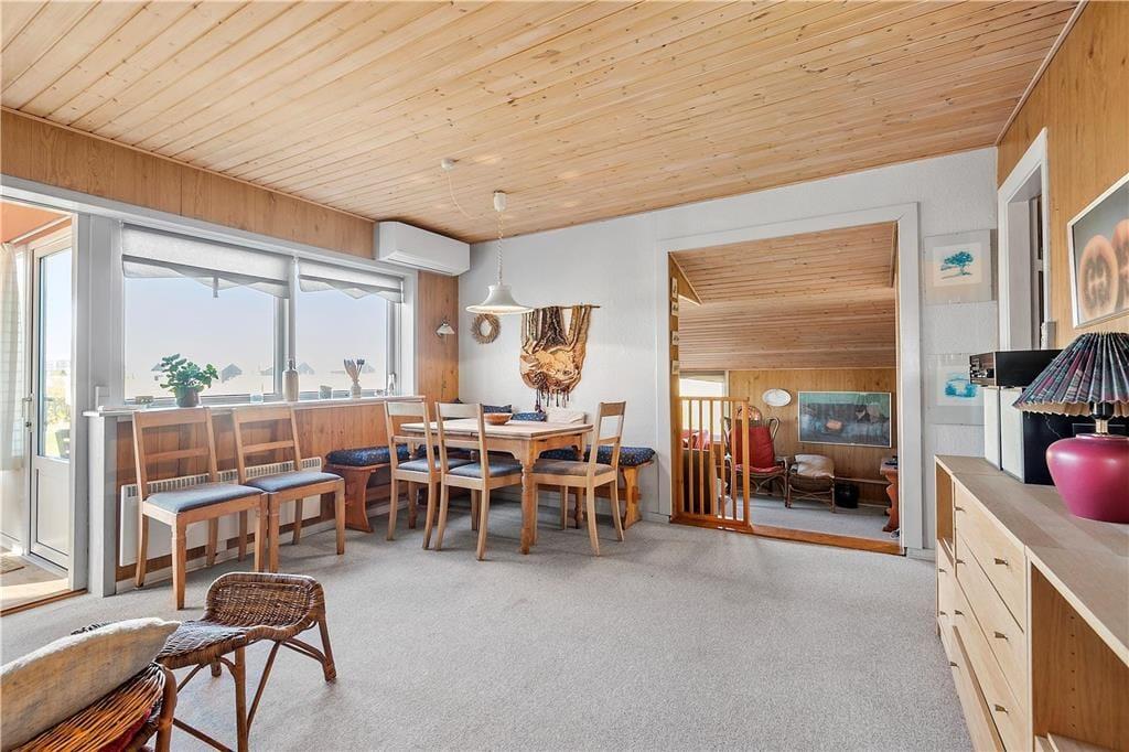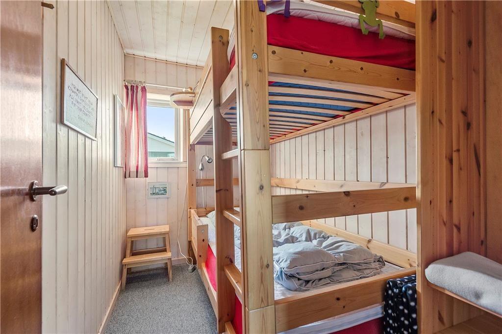 Kvadratmeterne er godt udnyttede i sommerhuset, der byder på tre soveværelser og et badeværelse foruden en velfungerende opholdsafdeling. Soveværelserne er indrettet med henholdsvis en dobbeltseng, en enkeltseng og en køjeseng, så alt i alt er der fem sengepladser i huset. Når I har lyst til at hygge jer sammen, kan I mødes i opholdsafdelingen, der består af et funktionelt køkken og to sammenhængende stuer, der på charmerende vis er niveau opdelt med et par trin imellem tv-stuen og spisestuen. Skinner solen, er det også oplagt at slå sig ned i den tilstødende udestue, for her inviterer de store vinduespartier dagslyset indenfor.