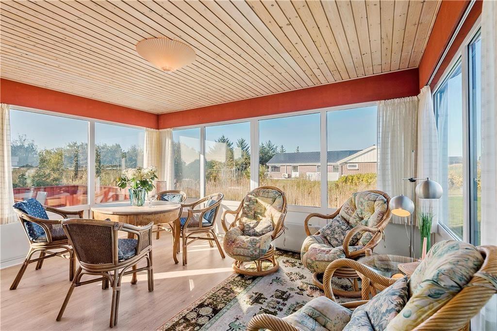 Der er masser af gode opholdssteder både ude og inde i dette dejlige sommerhus: På kølige aftner kan I hygge jer med brætspil og film i stuen, mens terrassen er perfekt til solbadning og sommerlige grillmiddage. Og så har I endda en perfekt mellemstation i form af en dejlig udestue, hvor I kan nyde det flotte lysindfald og de grønne omgivelser.
