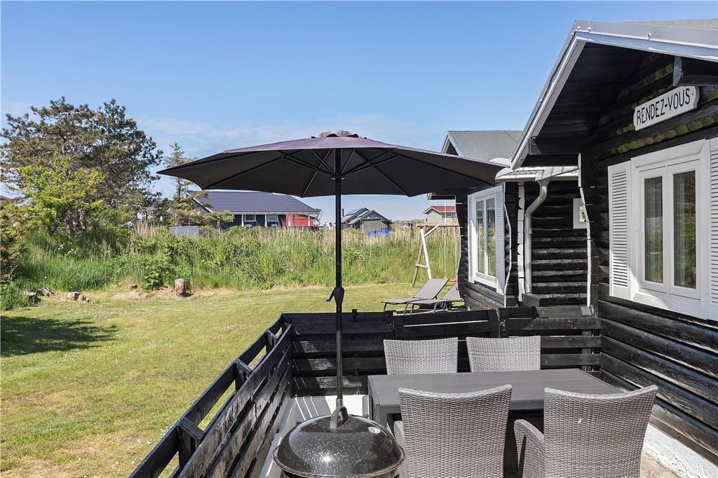 Denne fine feriebolig har masser af personlighed og en rustik stil, der passer godt til de naturskønne omgivelser ved Lakolk Strand.