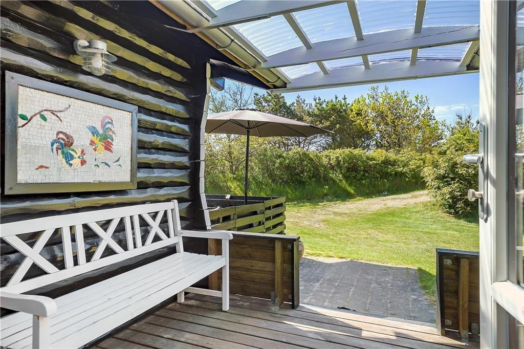 Udelivet kan oplagt tilbringes på de dejlige terrasser, der er placeret rundt omkring i sommerhuset. Har I brug for læ eller skygge, kan I slå jer ned på de overdækkede terrassearealer, og der er også et aflukket område, hvor hunden for eksempel kan gå frit uden at forvilde sig ud på vejen. Hvis I har små børn med på ferie, er det rart, at der er gynger og sandkasse på grunden, som måler 937 m2.