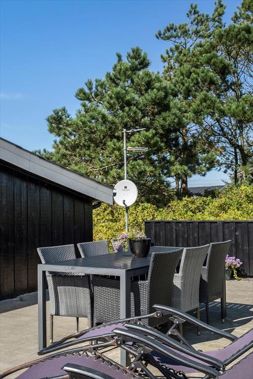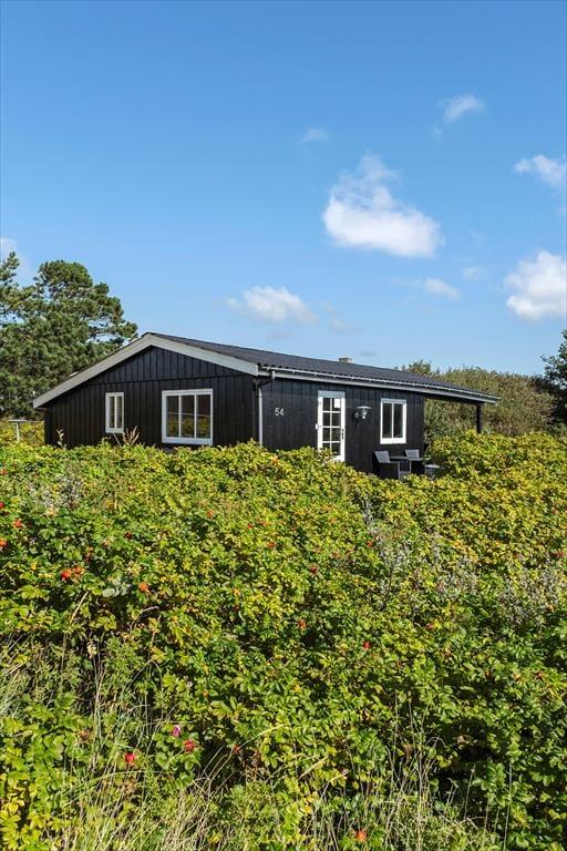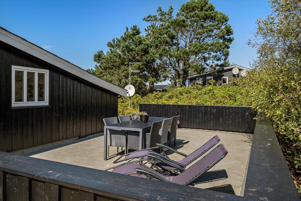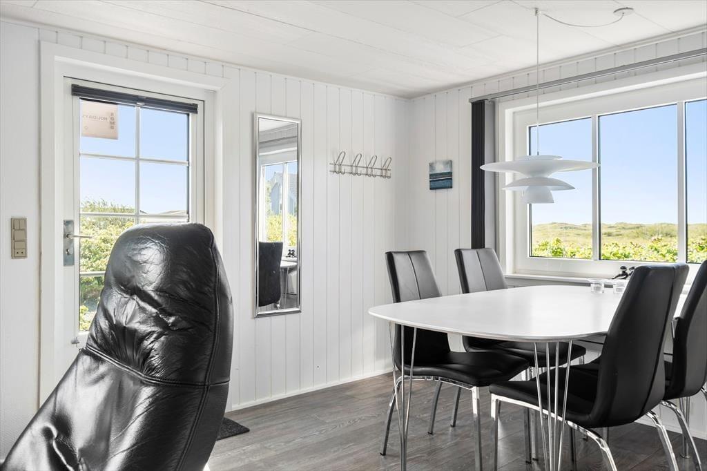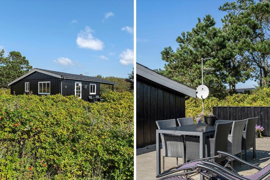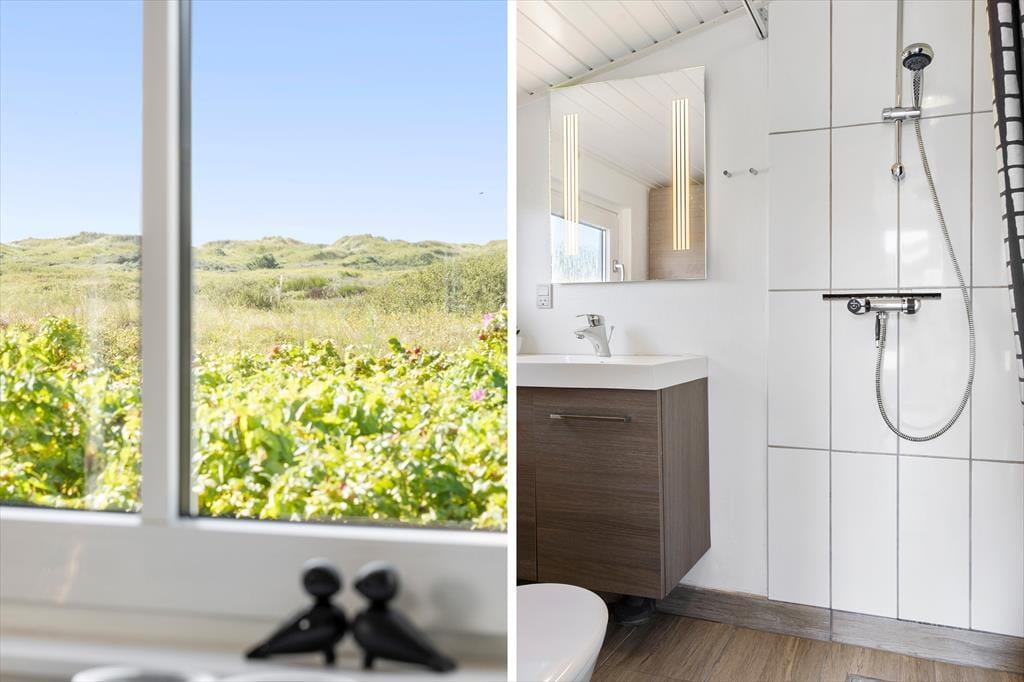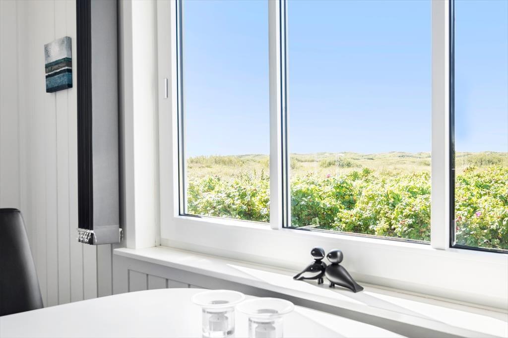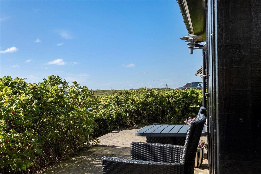 Der er mange gode grunde til at vælge dette fine sommerhus til din næste badeferie ved vestkysten. Huset har en lys og let atmosfære, og ude ligger et skønt terrassemiljøet i læ af hybenbuskene. Gennem stuevinduerne kan du kigge lige ud på Lakolks smukke klitlandskab, og hvis du vil ned på den brede sandstrand, er den dejligt tæt på.