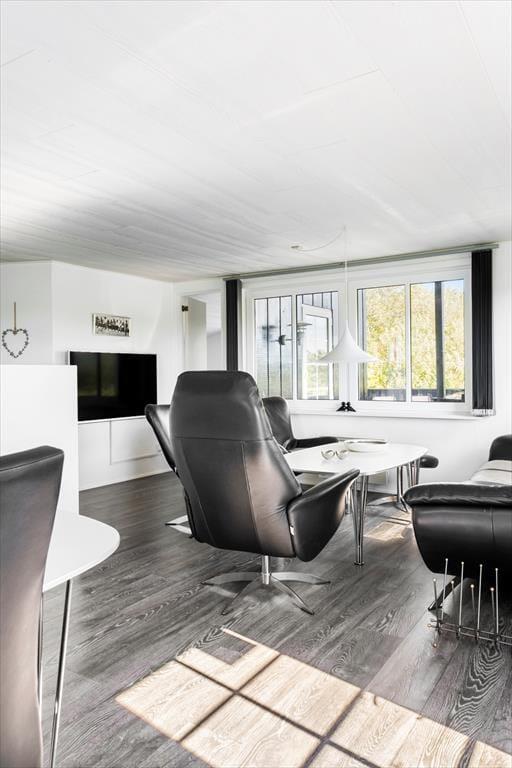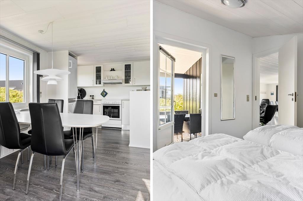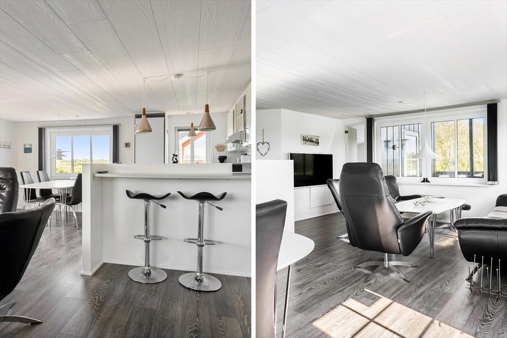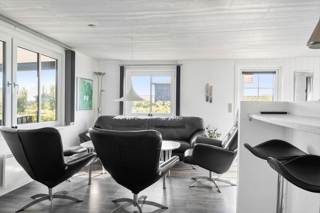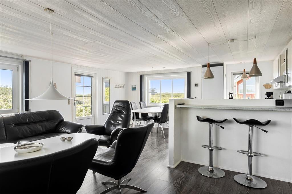 Når du bor så tæt på Vesterhavet, er det selvfølgelig oplagt at tilbringe en stor del af ferien i vandkanten – men det er nu også herligt at blive hjemme i huset for at nyde driverlivet i de stilfuldt indrettede rum. Farvetonerne er lyse, og solen kan kigge ind gennem vinduerne, mens du selv kan kigge ud på de naturskønne omgivelser. Ved det åbne køkken er der etableret en hyggelig siddeplads med barstole, så hvis du ikke er ansvarlig for madlavningen, kan du holde kokken med selskab. Stuens sofaafdeling sørger for, at I alle kan sidde komfortabelt, og når det er sengetid, kan du og dine kære se frem til at sove både godt og længe. Bemærk, at det ene soveværelse ligger i et anneks og har eget bad, så hvis familiens teenagere eller bedsteforældrene gerne vil bo lidt for sig, passer det perfekt til dem.