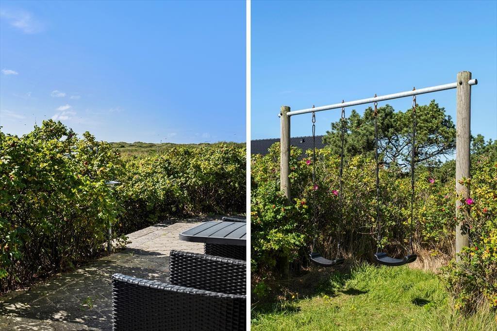Ude i det fri har du det dejligste terrassemiljø at nyde solen, freden og drivertilværelsen på– og så er det helt op til dig, om tiden skal bruges på at læse tykke bøger, spille kort med familien, tilberede mad på grillen eller noget helt fjerde. Hybenbuske skærmer udearealet godt af og spreder sommerlige dufte i blomstringssæsonen, og havemøblerne sørger for, at du har flere behagelige opholdspladser at vælge imellem alt efter vindretningen og solens placering på den høje, blå himmel. Et overdækket areal er for øvrigt også rart at have, og gyngerne vil de yngste familiemedlemmer sikkert blive glade for.