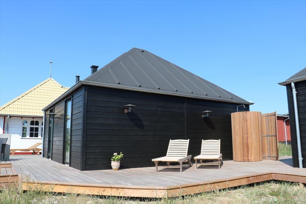 Ikke bare fra entréen, men fra alle rum i tilbygningen har I direkte adgang til det fri, så det er særdeles let at komme ud i solen. Rundt om sommerhuset breder et lækkert terrassemiljø sig med mange gode opholdspladser og lækroge. Til livsnyderne er der petanque bane, udespa, koldtvandsbadekar, saunatønde og udebruser og et shelter giver jer mulighed for at få en siesta i skyggen – eller at tilbringe natten i den friske havluft. Kommer I i elbil, er der lader ved huset.