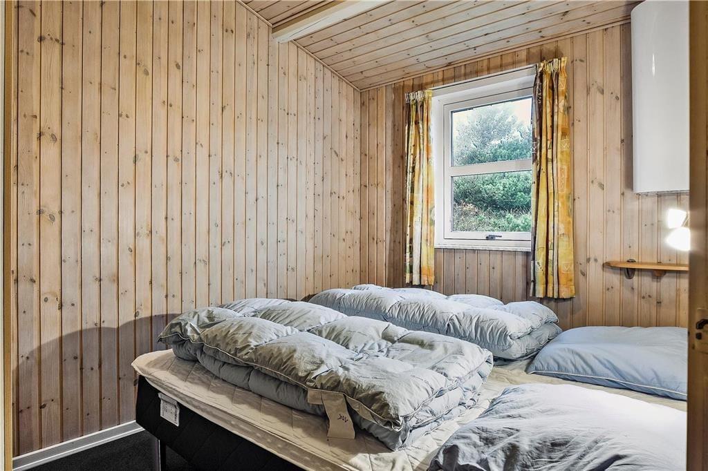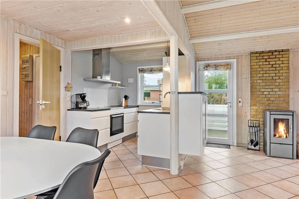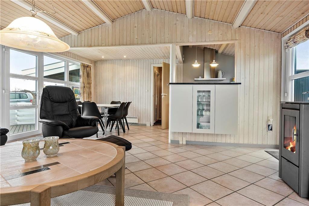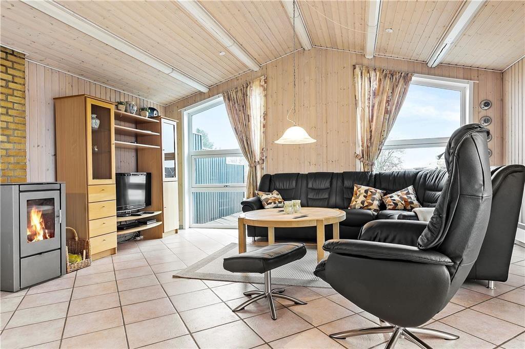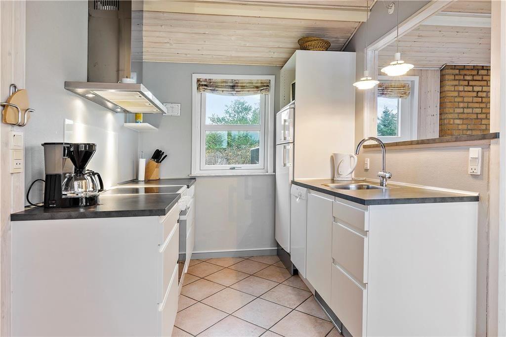 Sommerhuset er opført i 1964, og siden er det blevet nænsomt vedligeholdt, opdateret og endda udbygget. Derfor kan I nu blandt andet nyde ferielivet i et stort og lyst opholdsrum, der byder på klinkegulv med indlagt gulvvarme, en brændeovn og et moderne køkken, hvoraf sidstnævnte blev installeret i 2014. Også badeværelset præsenterer sig på flot vis med pænt og enkelt interiør. I opholdsrummet strømmer lyset ind gennem store vinduer fra tre verdenshjørner – og takket være den gode isolering kan I sagtens hygge jer inden døre hele året rundt. Når I ikke slapper af med madlavningsprojekter, gode måltider, en spændende film i TV eller en læsestund i sofaen, kan I overveje, om det er tid til en middagslur på et af de to soveværelser, der er udstyret med henholdsvis en dobbeltseng og to enkeltsenge.