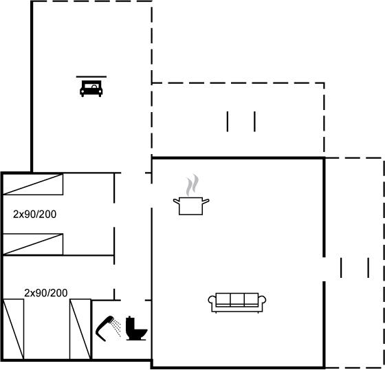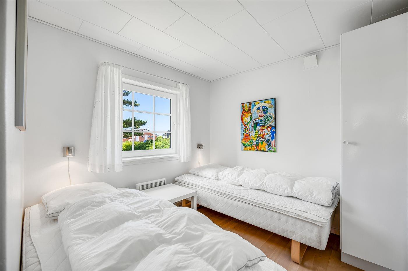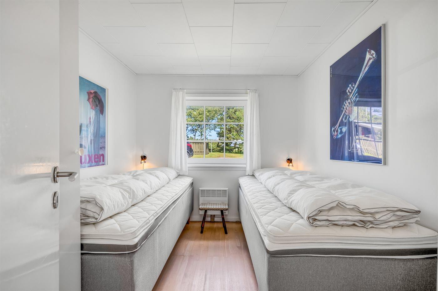 Der er i alt 2 soveværelser. Sovepladserne fordeler sig på: 2 sovepladser i dobbeltseng. 2 sovepladser i enkeltsenge.