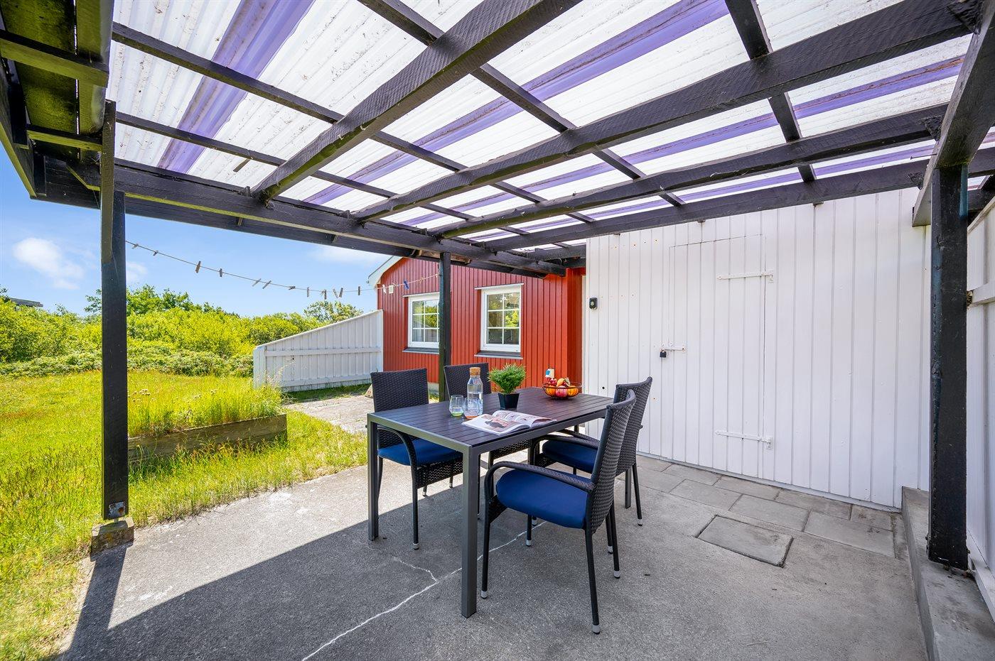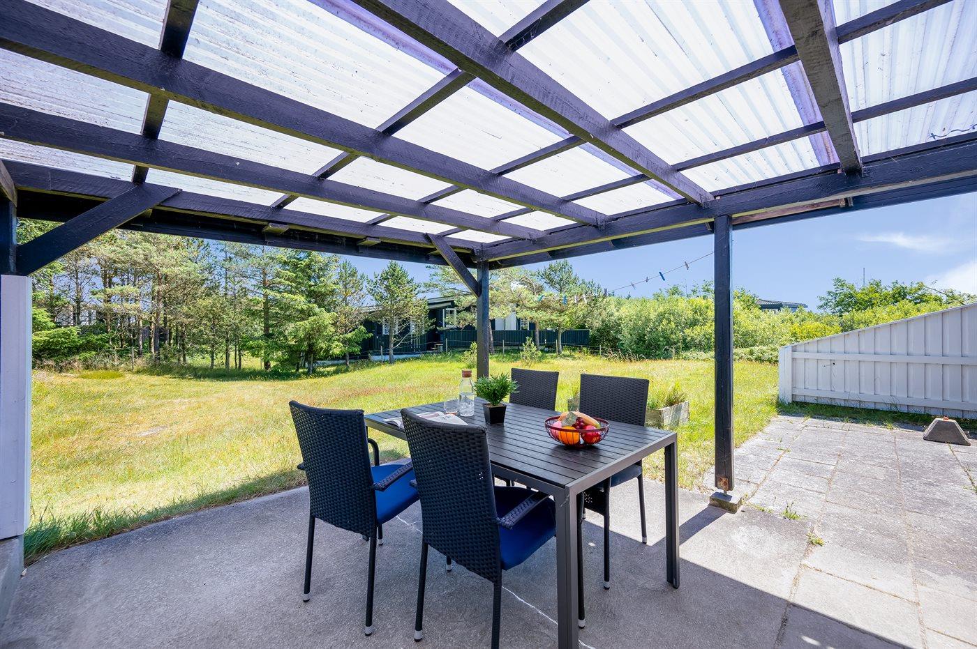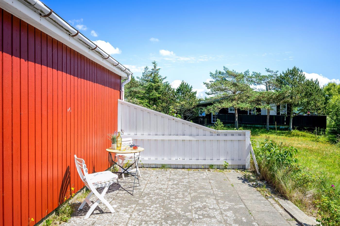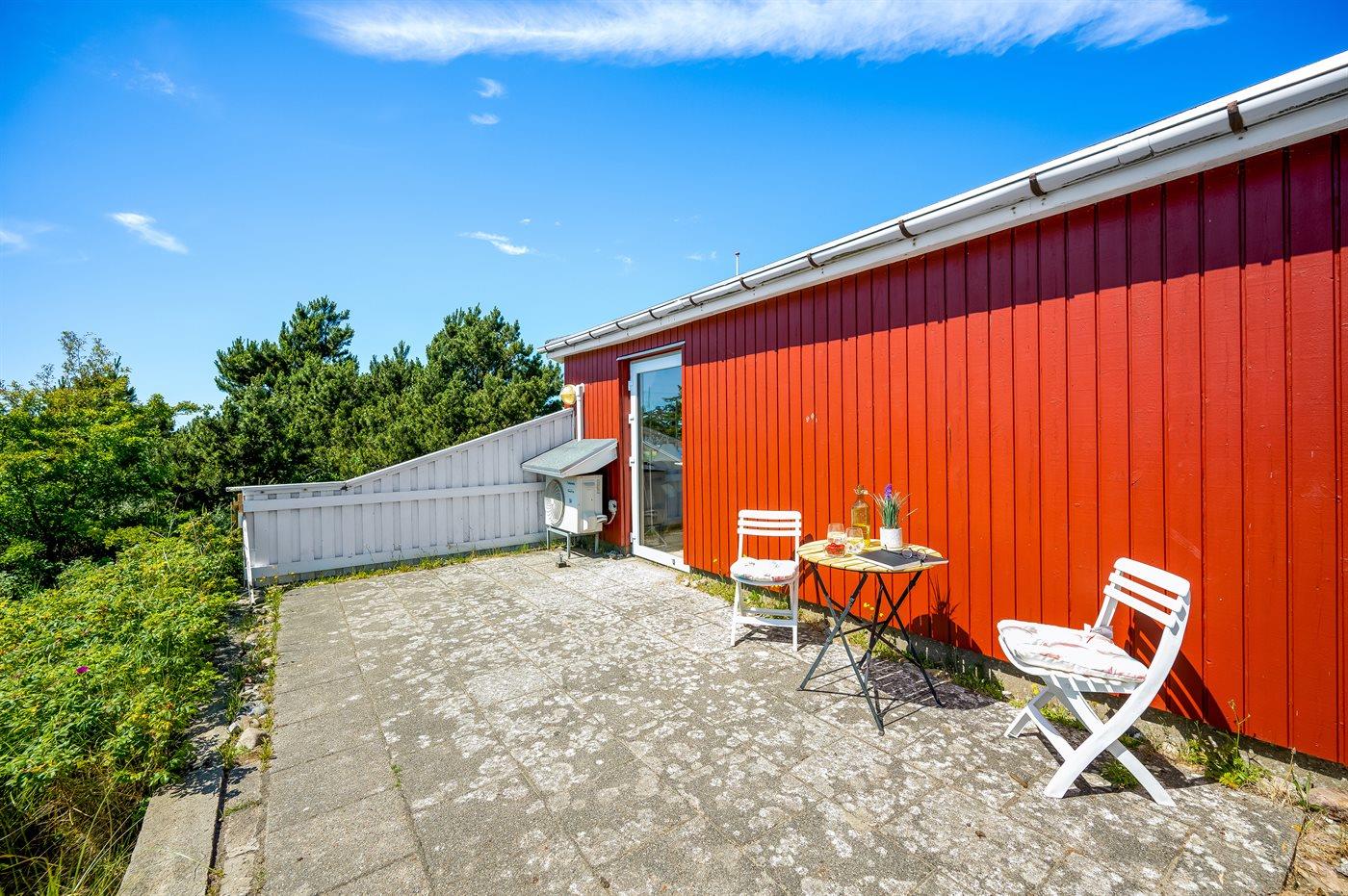 Ferieboligen er beliggende på en 1049 m² stor naturgrund. Der er 500 m til havet. Der er 3500 m til Vadehavet. Nærmeste forretning er beliggende i en afstand af 500 m. Til ferieboligen hører åbent terrasseareal. Desuden er der overdækket terrasse. Der ligger en legeplads i en afstand af 500 m. Grill til rådighed. Der er installeret stik til opladning af elbil. Der er installeret stik til opladning af elbil (mormorlader). Parkering ved ferieboligen.