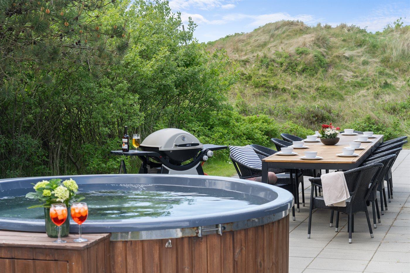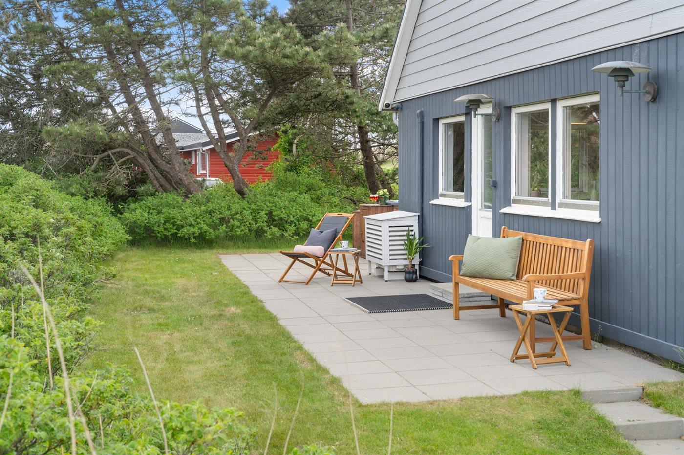 Ferieboligen er beliggende på en 1400 m² stor naturgrund. Der er 500 m til havet. Der er 3800 m til Vadehavet. Der er en sø i en afstand af 4300 m. Nærmeste forretning er beliggende i en afstand af 1200 m. Der er en golfbane i en afstand af 6200 m. Til ferieboligen hører 50 m² terrasseareal. Sandkasse. Der ligger en legeplads i en afstand af 1200 m. Grill til rådighed. Der er installeret stik til opladning af elbil. Med 11 kW ladeeffekt. Parkering ved ferieboligen.