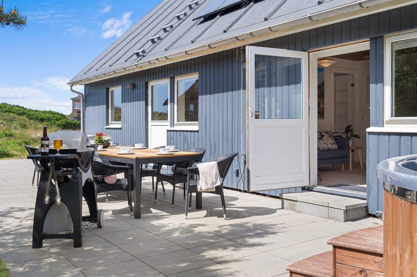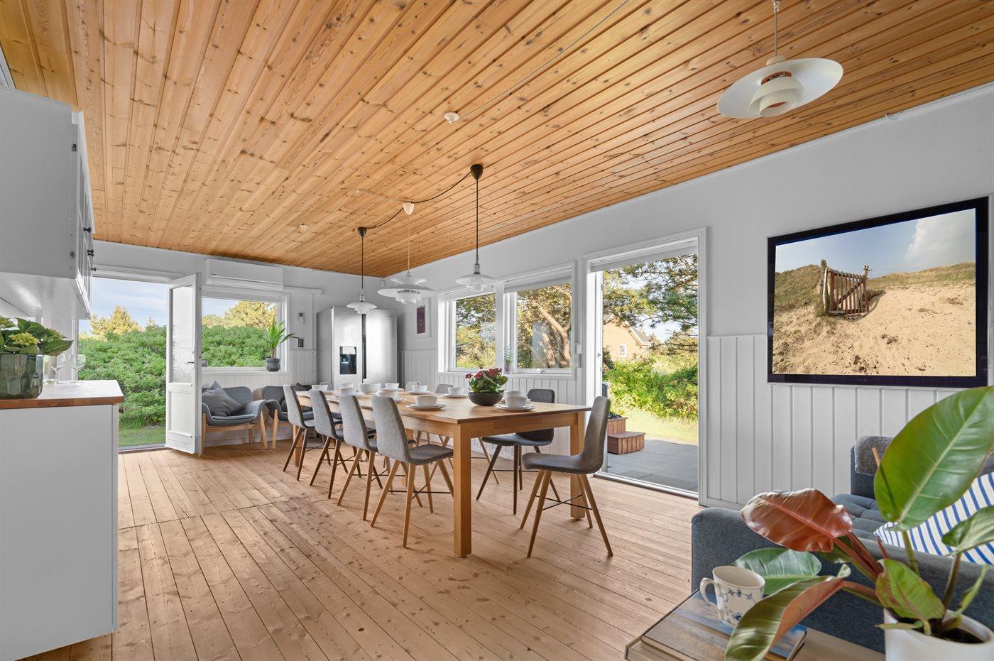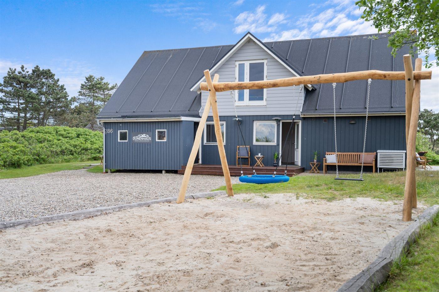 Fra terrassen direkte ind i klitterne! Et lyst og velindrettet sommerhus med masser af naturligt lysindfald, som med sine 200 m2 snildt byder plads til 12 personer. Husets gode indretning, værelsernes opdeling og de 2 moderne badeværelse gør huset velegnet til 2 familier eller flere generationer, som ønsker at tilbringe ferien under ét og samme tag.